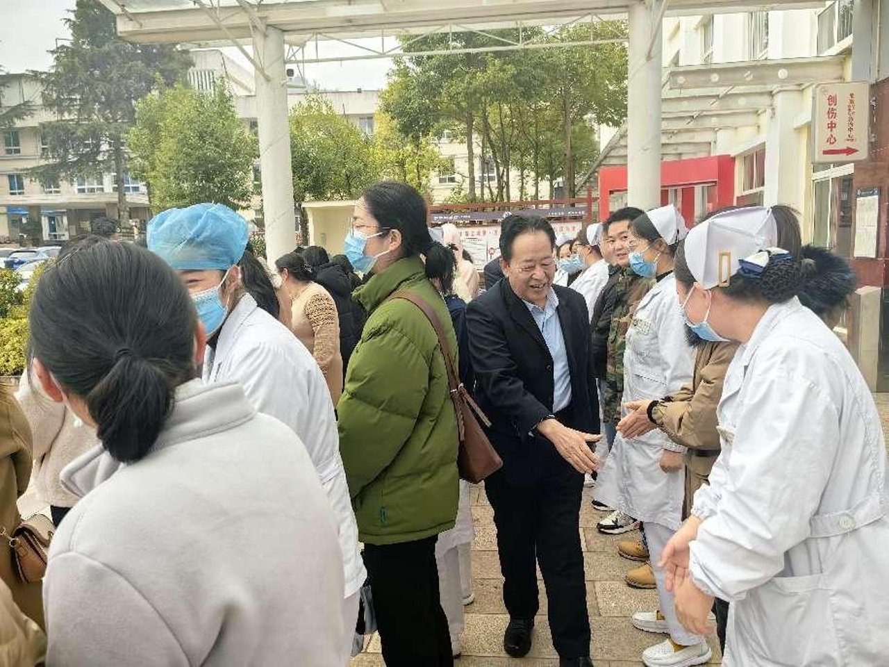 云南弘渂教育集团理事长、350vip浦京集团官网董事长龙正昌向一直以来支持学院发展的寻甸县第一人民医院表示诚挚的谢意。他首先介绍了学院发展有关情况,并对寻甸县第一人民医院的建设发展现状及医疗、教学、科研工作等给予高度评价。他强调,希望医院加强教学组织机构和教学管理制度建设,进一步强化教学意识,不断提升教学质量。