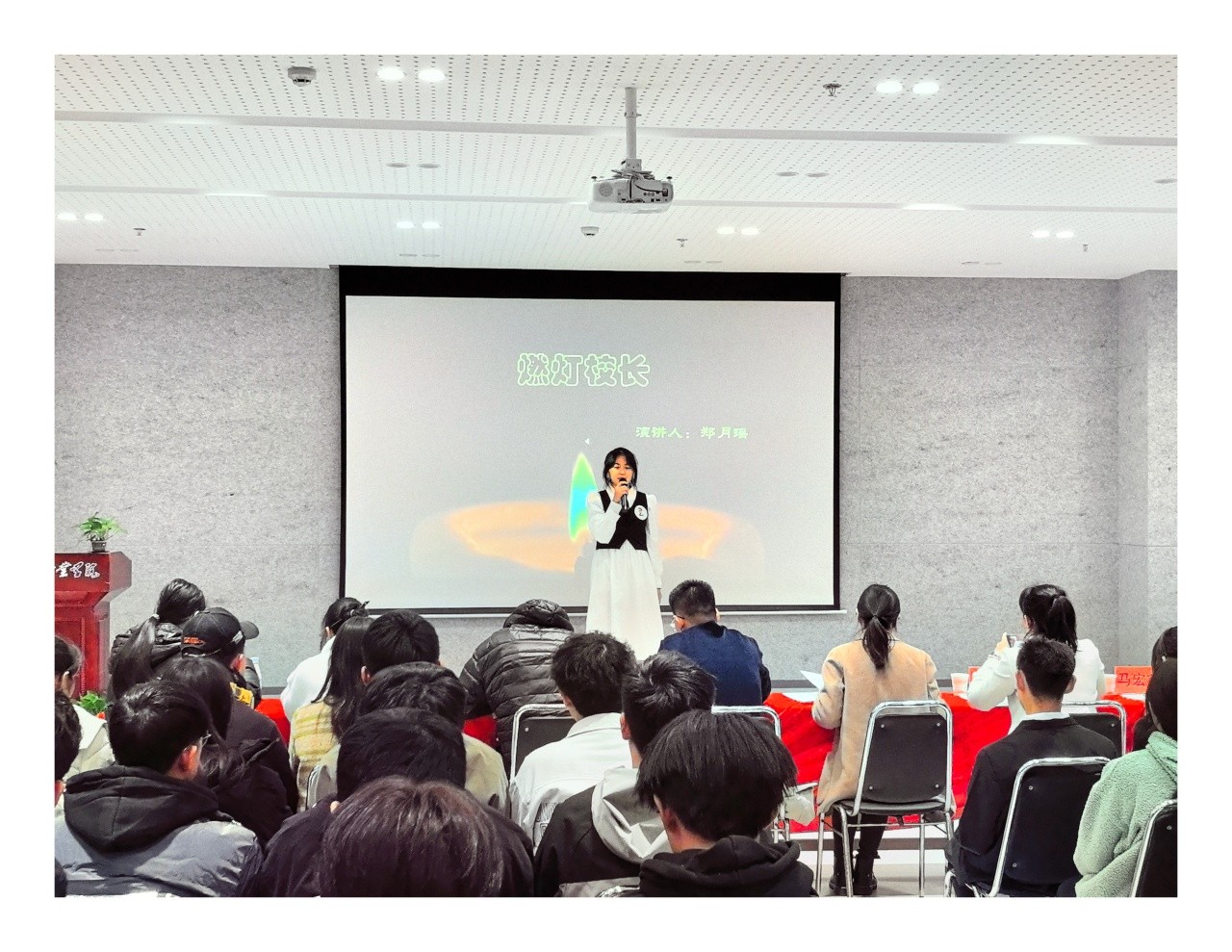 此次比赛由教务处段琎楠老师及读者协会杨绍莹同学主持,教务处处长孟州令老师、大学生工作部部长郭佶颖老师、团委书记张艳老师、教务处副处长李云飞老师、公共学院副院长朱蓉老师、教务处副处长关欣老师、公共学院语文教研室主任马宏鑫老师担任评委,对选手们进行打分和点评。