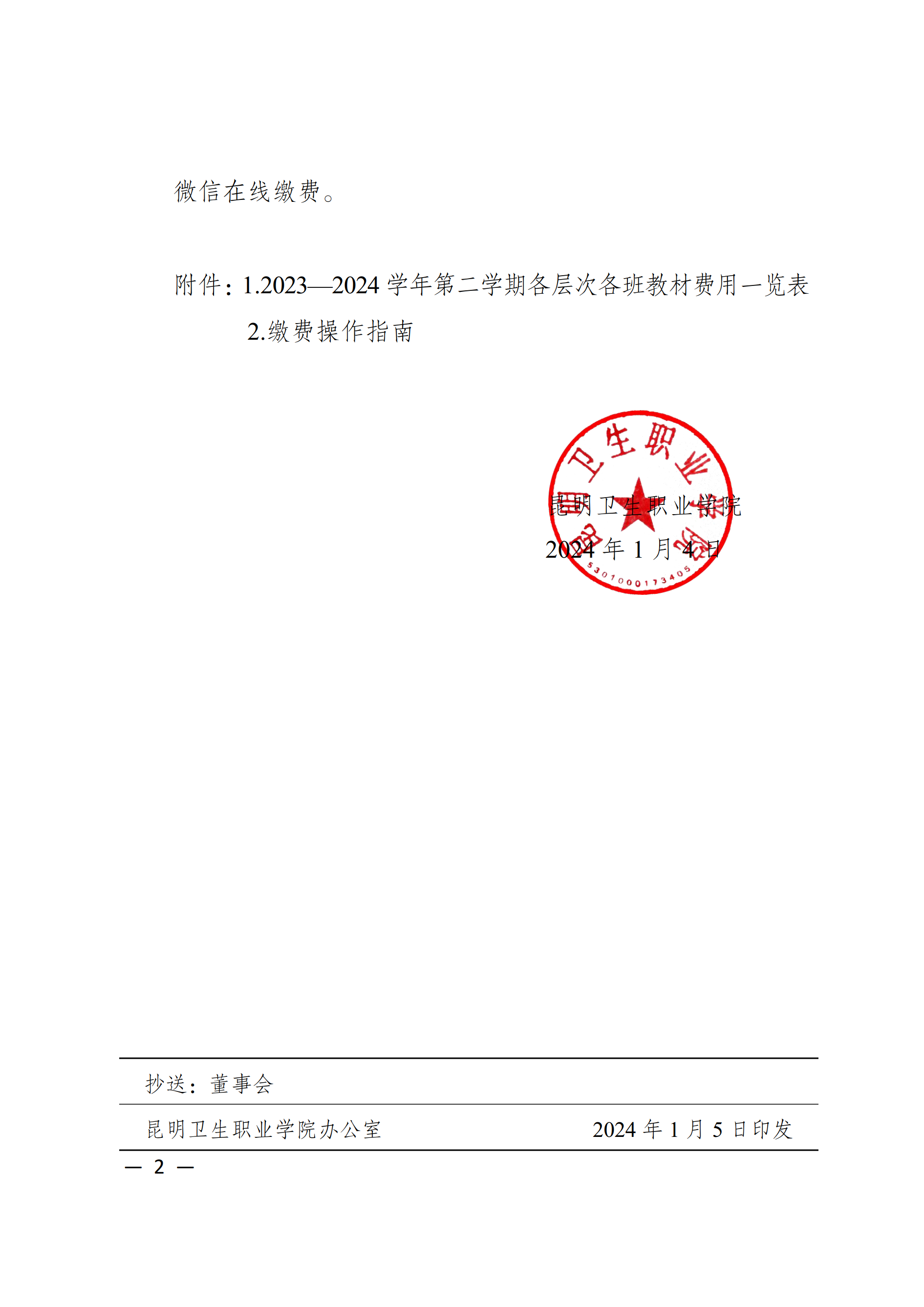 350vip浦京集团官网关于预收2023—2024学年第二学期教材费用的通知