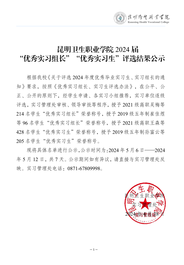 350vip浦京集团官网2024届“优秀实习组长”“优秀实习生”评选结果公示