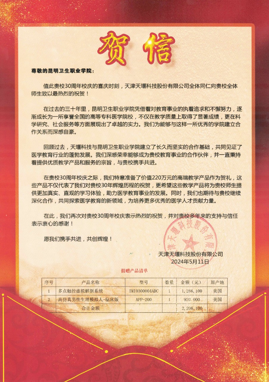 天津天堰科技股份有限公司致350vip浦京集团官网30周年贺信