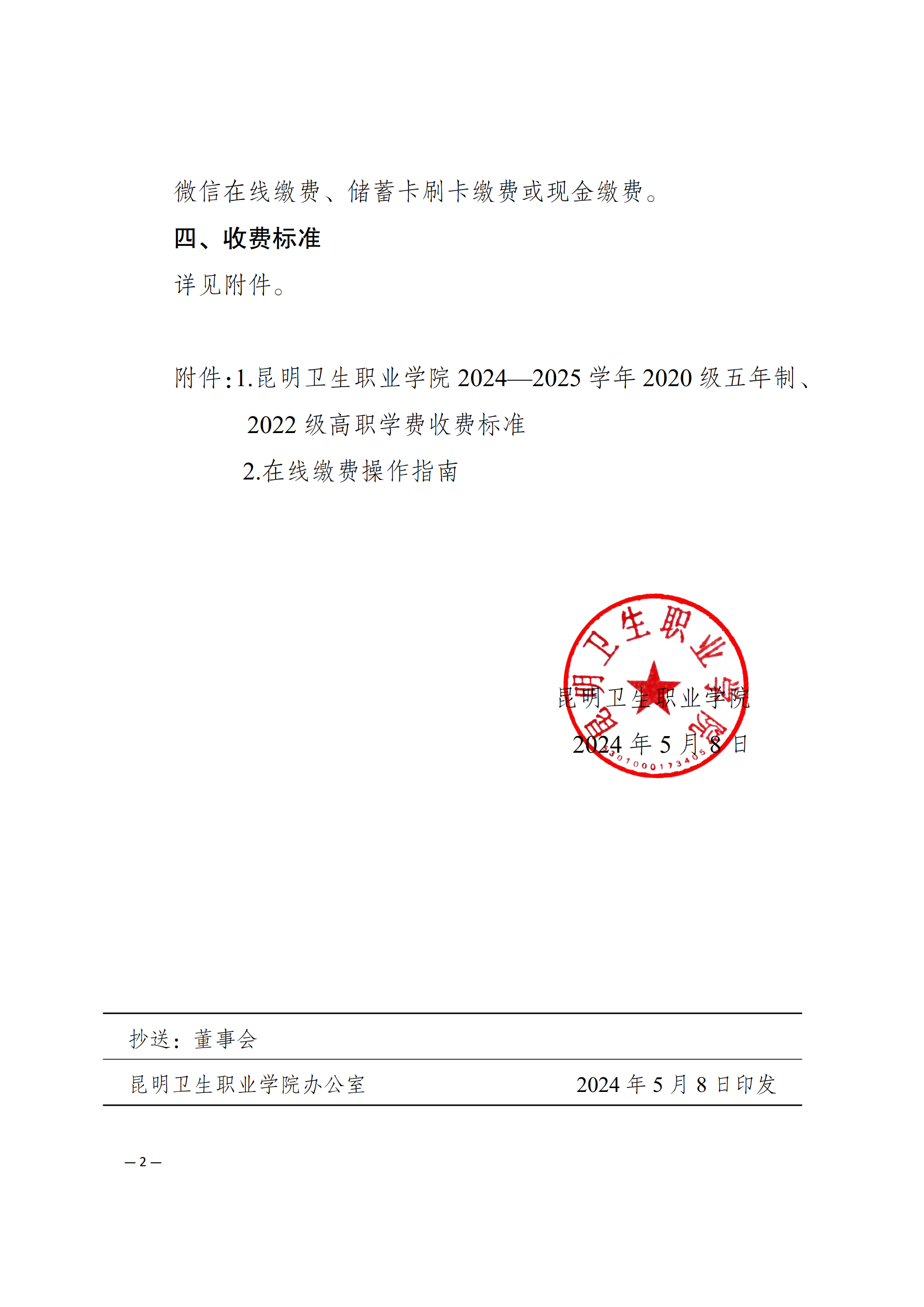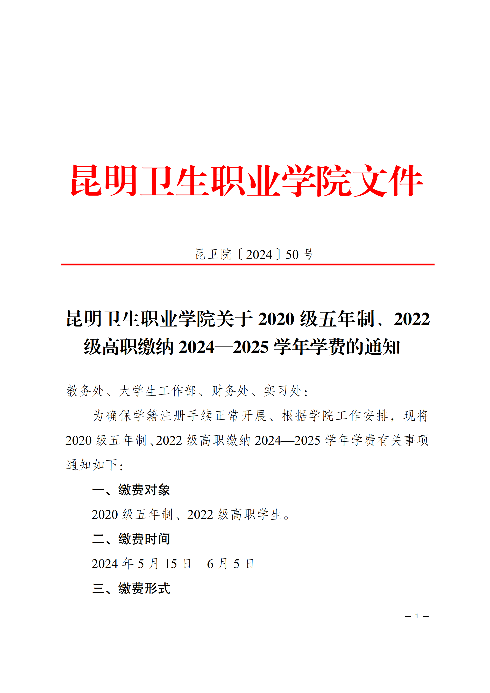 350vip浦京集团官网关于 2020 级五年制、2022 级高职缴纳 2024—2025 学年学费的通知