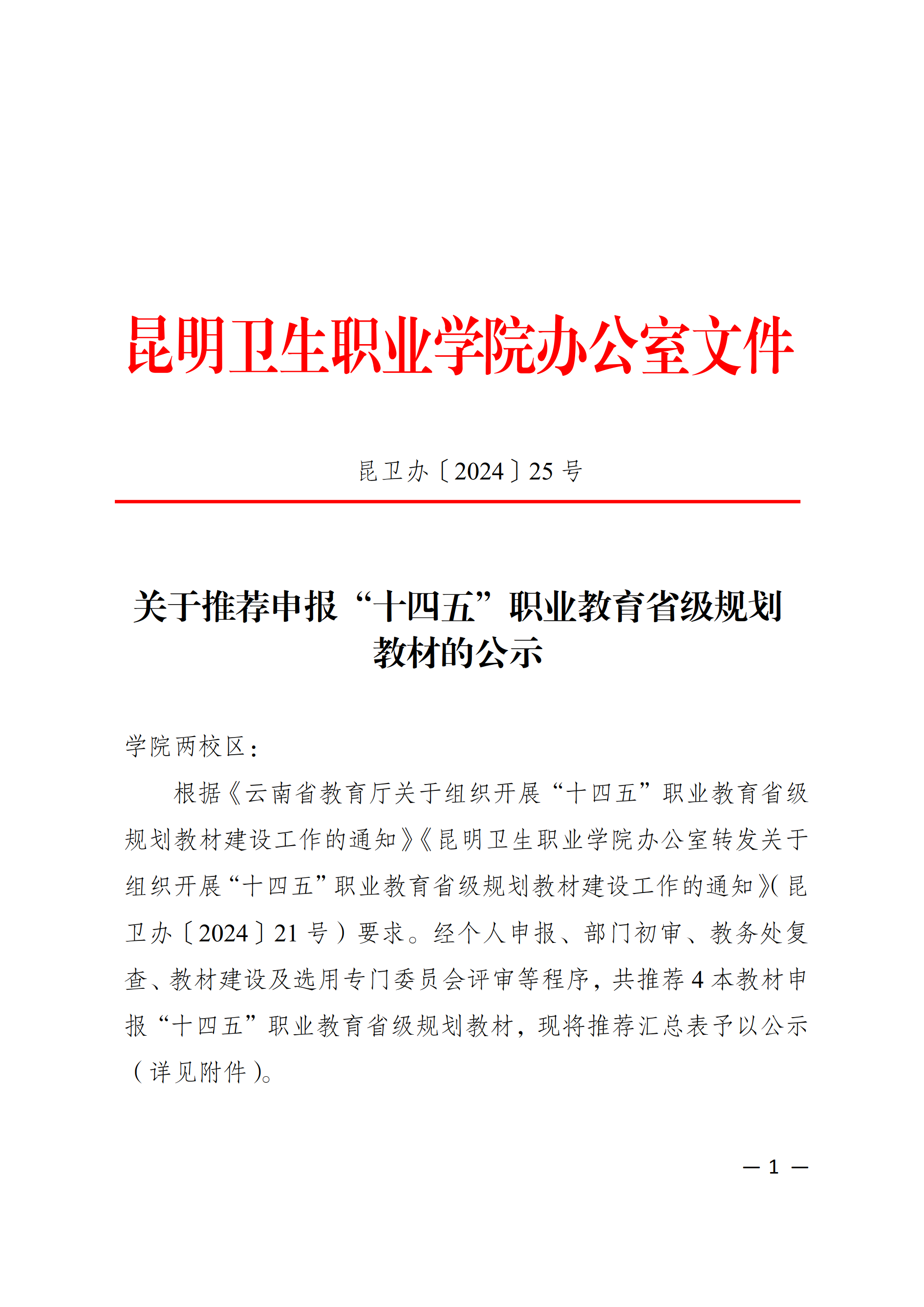 关于推荐申报“十四五”职业教育省级规划教材的公示
