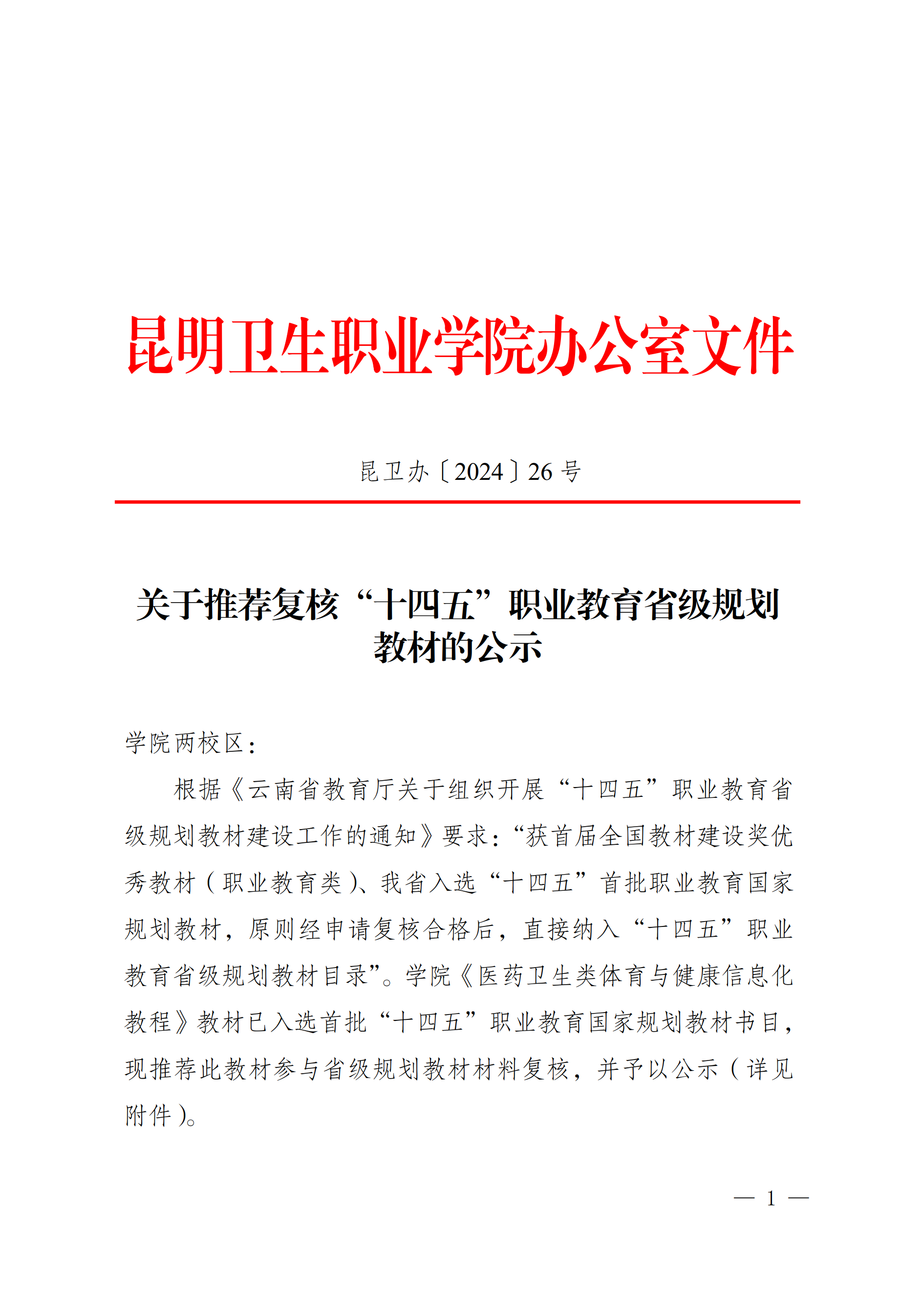关于推荐复核“十四五”职业教育省级规划教材的公示