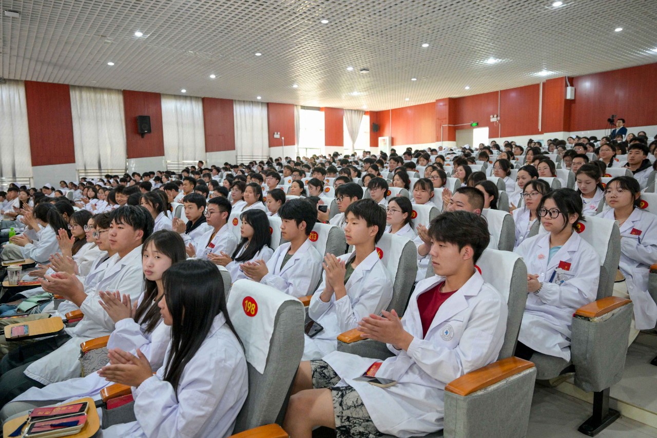 校友陈玲以“熠熠青春逢盛世 奋楫扬帆正当时”为题。讲述了她从护士到护士长在临床实践中的深刻感受,她鼓励学弟学妹们要努力学习专业知识和技能,要用自己的行动诠释“健康所系,性命相托”的医者誓言。