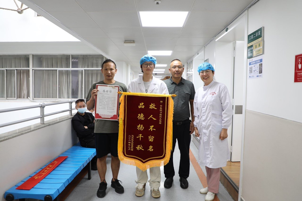 9月9日,老人家属在警方的协助下前往云南省中医医院口腔科,找到了实习生王俊辉同学。患者家属将一面写着“救人不留名,品德扬千秋”的锦旗和感谢信送到云南省中医医院口腔科王俊辉同学手中,表达感激之情。面对医院、学校的赞誉,王俊辉同学表示危难之时救人是作为一名医学生的本能反映,也是健康所系、性命相托的职责所在。