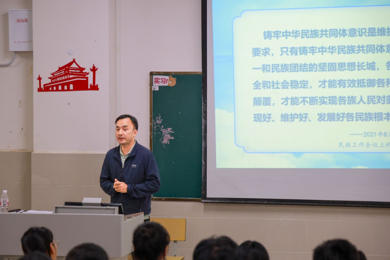 在讲授过程中,马季昕书记与同学们积极互动,倾听同学们的想法和感受,用生动的案例引导同学们参与讨论,引导同学们在日常学习和生活中自觉践行中华民族共同体意识,以实际行动维护民族团结,促进校园和谐。