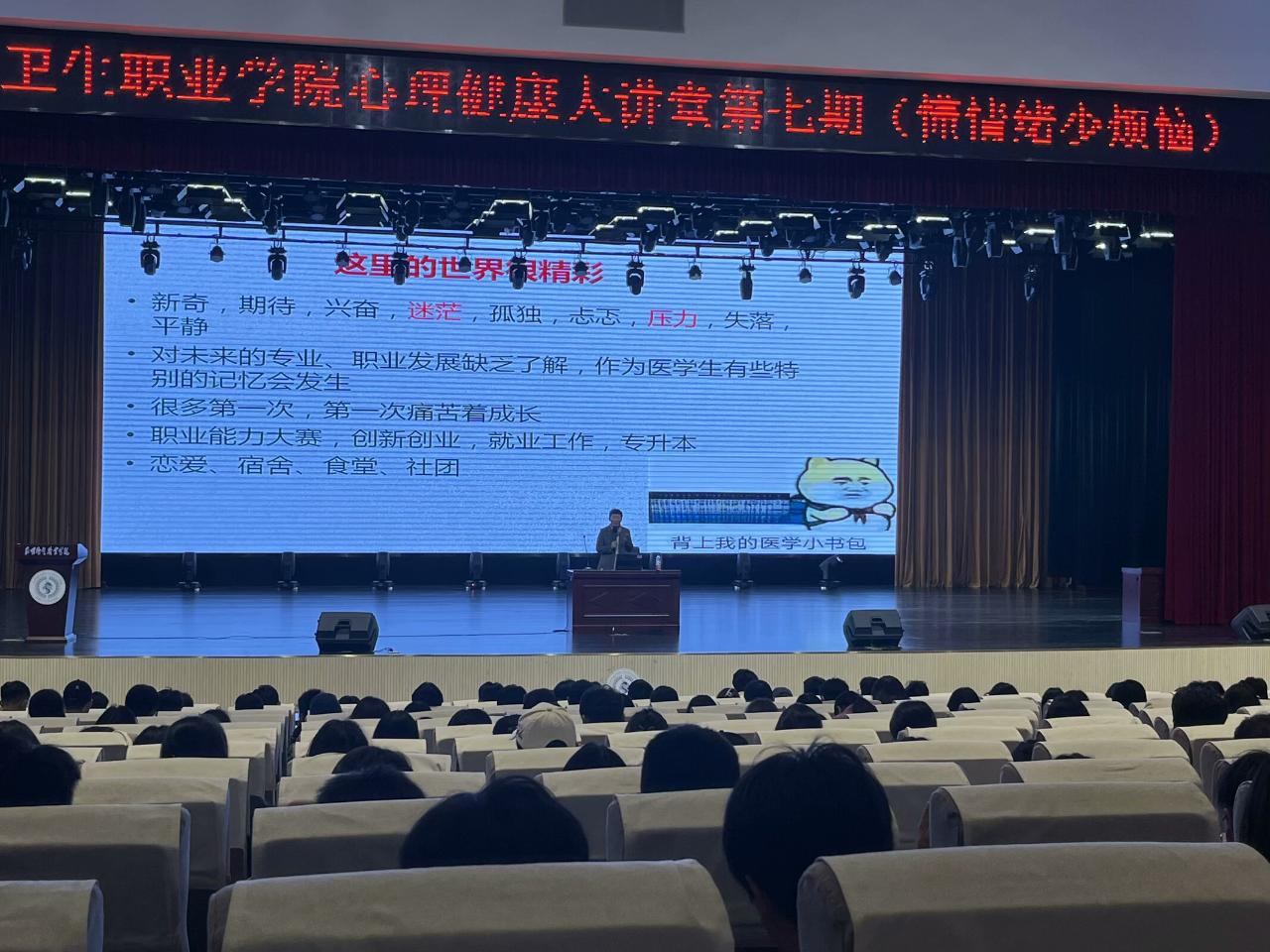 讲座开始时,陈教授问大家:来到350vip浦京集团官网,你的心理是怎么想的?可能会想到对医学类课程的好奇,新的学校、新的环境、一切都很精彩,可能会存在新奇、期待、兴奋、迷茫、孤独、压力、失落以及平静等情绪;可能会对未来的专业、职业发展缺乏一些了解......同学们在人生的旅途中会有很多新的尝试,每一次都需要我们去面对;在学校里还有各项职业技能大赛、创业、就业工作、专升本等等,每个人都需要在学校里学会自我成长。