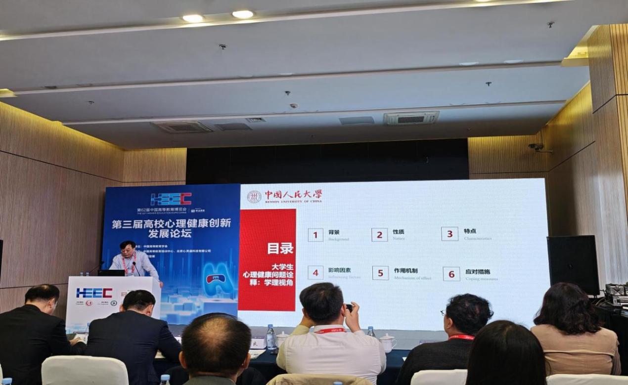 教育部全国学生心理健康工作咨询委员会副主任俞国良教授以“大学生心理健康问题的时代诠释”为主题开展报告。他指出,提升高校心理健康教育效能,要反对诊断主义、还原主义和教育万能论三种“本本主义”,他提出要将学校教育、卫生健康、社会建设三个领域和个体、人际、群体、社会和环境五个维度结合起来,“综合治理”大学生心理健康问题。