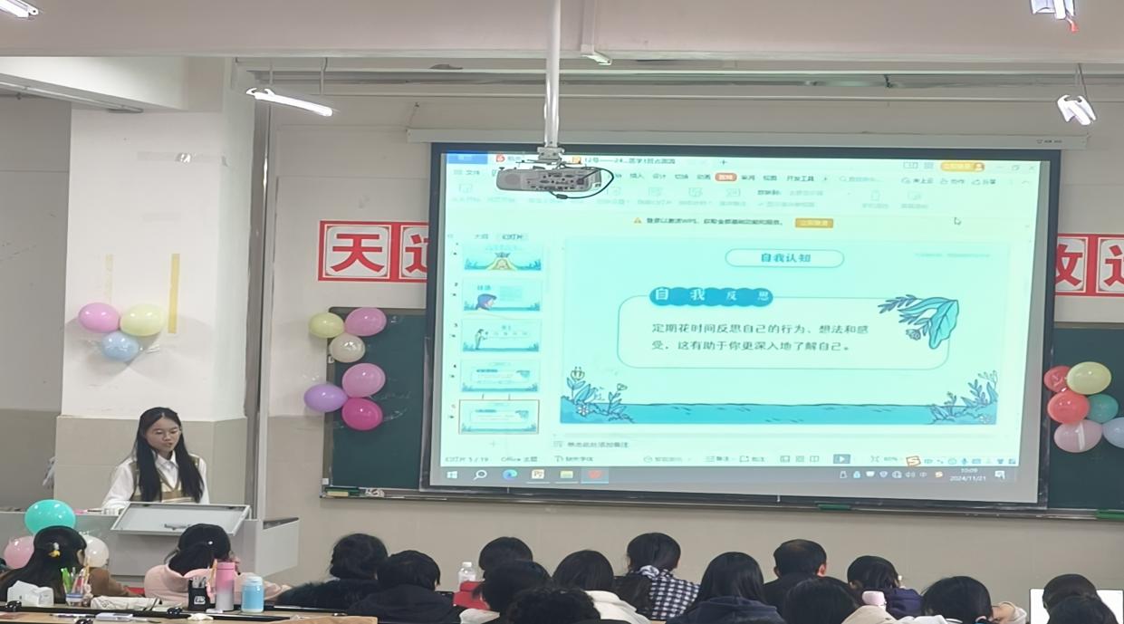 在现场,主持人宣布讲课比赛的评分细则,此次比赛从五个板块来为同学们评分。比赛中,各位参赛选手各显神通,围绕心理健康的不同主题,如压力管理、情绪调节、人际交往、自我认知等,展开了精彩纷呈的讲解。有的选手通过生动的案例分析,深入浅出地阐述了心理健康问题的成因与应对策略;有的选手则运用互动游戏的方式,让听众在轻松愉快的氛围中掌握心理调适的技巧。选手们的讲课风格各异,但共同之处在于都注重理论与实践的结合,用科学的方法引导同学们关注心理健康,学会自我调节。