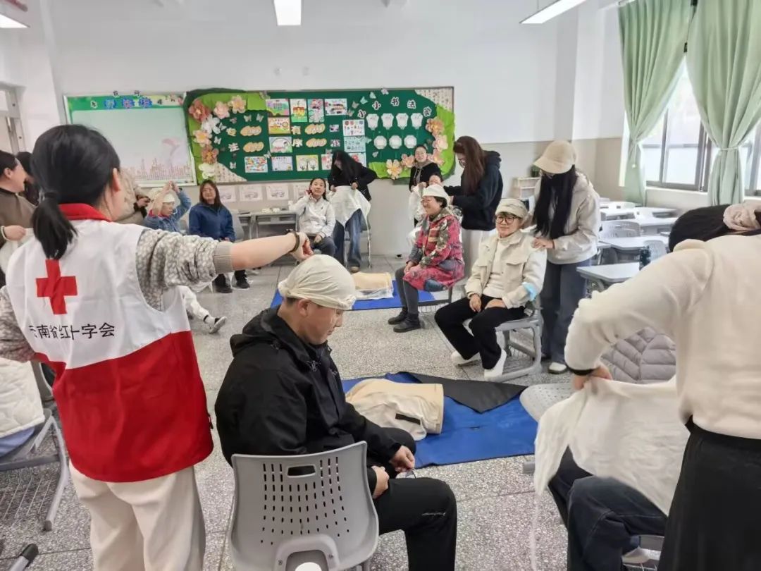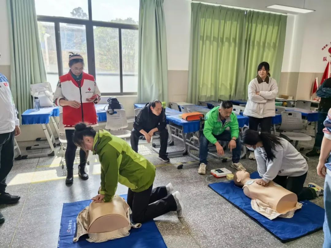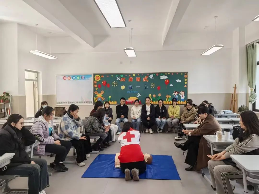 本次急救知识进校园活动分两个阶段开展。2月19日,学院联合晋宁区红十字会,为韶山小学170余名教师开展了急救知识和技能培训,内容涵盖心肺复苏(CPR)标准操作流程、自动体外除颤器(AED)使用方法、创伤救护技术要点以及常见急症的应急处置等多个重要模块。培训结束后,通过考核的教师获颁红十字救护员证书。