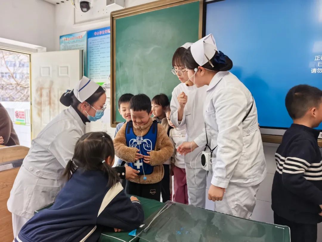 2月27-28日,在李玉晶副院长的带领下,32名师生走进韶山小学,面向全体学生开展急救知识与技能培训。培训师生因材施教,按照“听得懂、学得会、记得住、用得着”的原则,根据小学生的年龄特点和认知差异,精心设计了分级课程,寓教于乐,让孩子们在互动游戏中学习并掌握急救相关知识和技能。