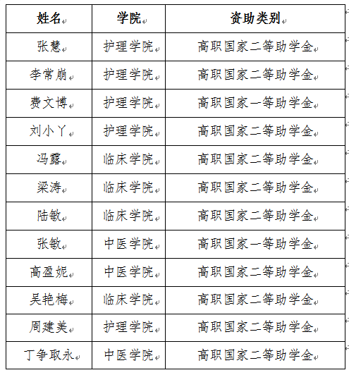 高职国家助学金:经二级学院核实受助学生名单,结合全国学生资助系统更新的重点保障人群数据,经学生主动申请、二级学院审核、资助中心核实确认,现共计12名受助学生因学籍变动不再符合高职国家助学金受助条件。现将受助资格收回,重新分配至其他12名符合资助条件且家庭经济困难的学生。