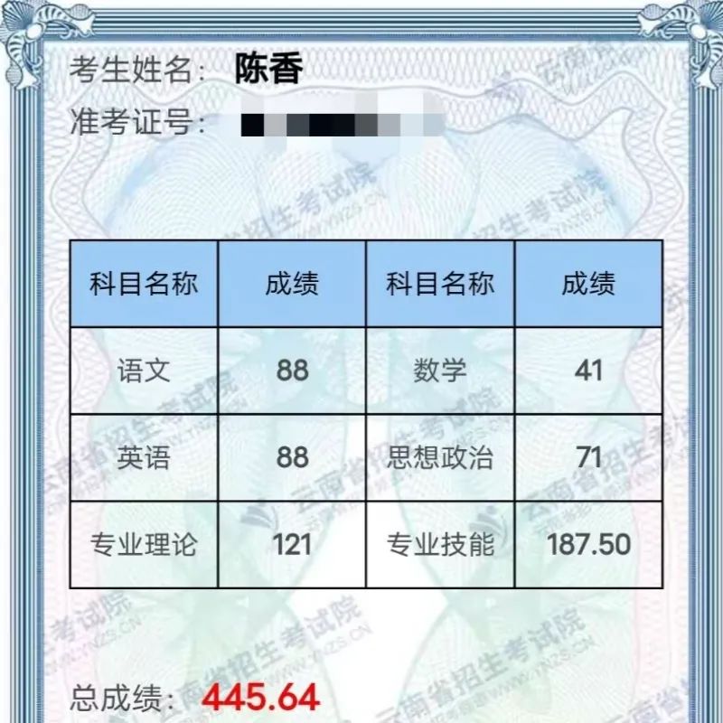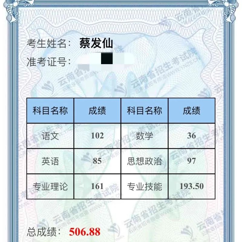 医学类考生包揽全省前三甲中的两席,药学类仅占全省4.6%的参考人数,却以32.2%的进百率惊艳四方。护理类16名学子昂首迈入本科线,李静怡、许福享等名字如星辰般闪耀于全省前30名。他们曾以“低分”踏入中职校门,却在昆卫的沃土上淬炼出“高分”的锋芒。