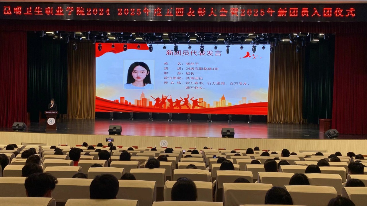 24级高职临床4班杨然予作为新团员代表发言,她表示将以入团为契机,努力提升自我,为团组织争光,为国家和民族贡献力量。
