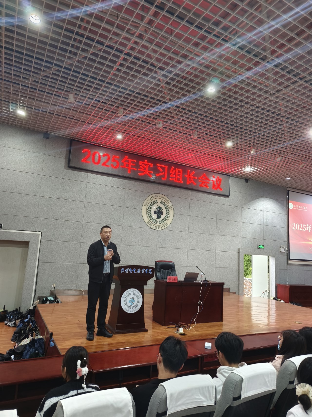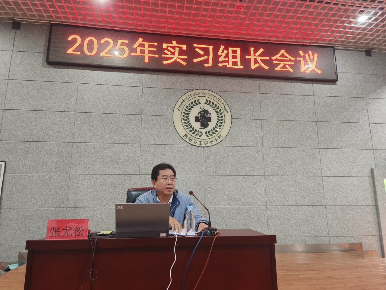 为确保 2025 年实习工作的顺利开展,进一步明确实习组长的工作职责与任务,教务处临床实践教学管理科于5 月28日在晋宁校区学术报告厅组织召开了 2025 年实习组长会议。学院张尤松副院长,天津天堰科技有限公司黄文华,临床实践教学管理科全体教师以及各单位实习组长参加了此次会议。会议由教务处副处长颜慧林主持。