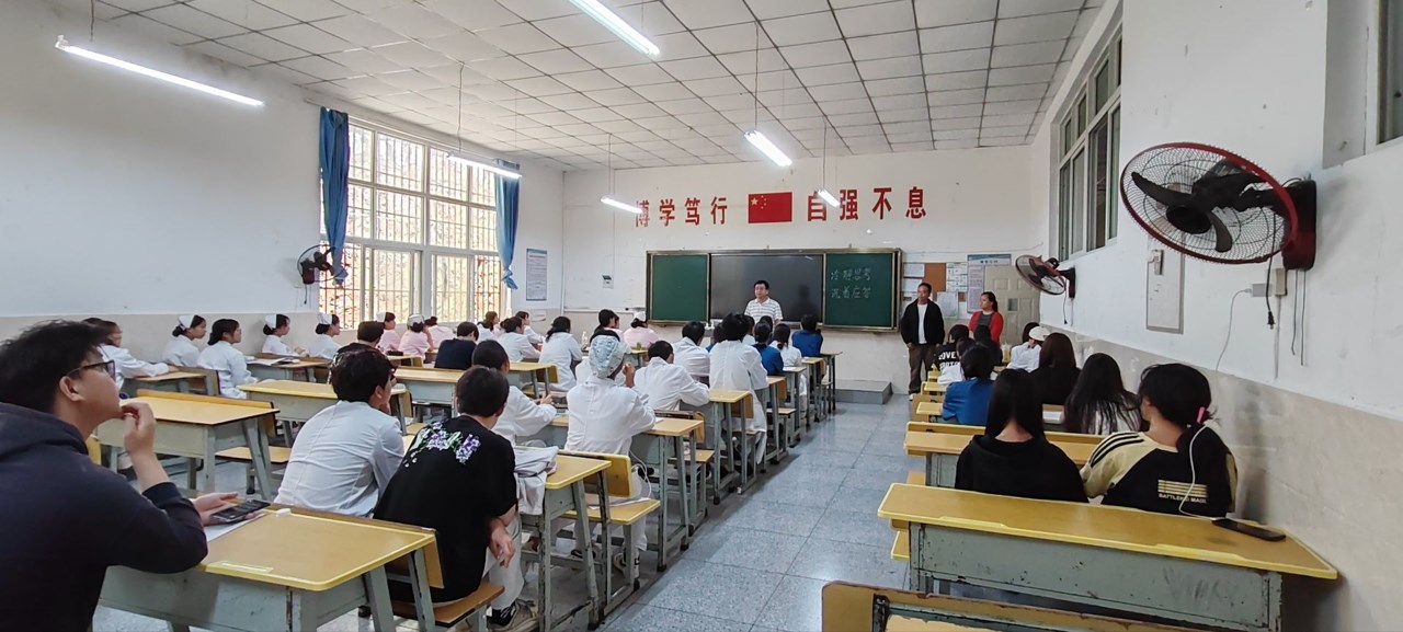 学院张尤松副院长现场动员讲话。他深刻阐述了实习作为理论与实践结合关键环节的重要意义,称其为同学们正式步入社会、开启职业生涯前的宝贵试炼。他提出“三个牢记”,即 牢记身份,快速适应从“医学生”到“准医务人员”的身份转变;牢记安全,人身安全、医疗安全、信息安全同等重要;牢记学习,能把病房当课堂、把患者当老师、把操作当考试。张副院长鼓励同学们珍惜难得的实习机遇,希望大家在实习中“向下扎根,向上生长”。持续精进专业技能,全方位提升个人综合素质。