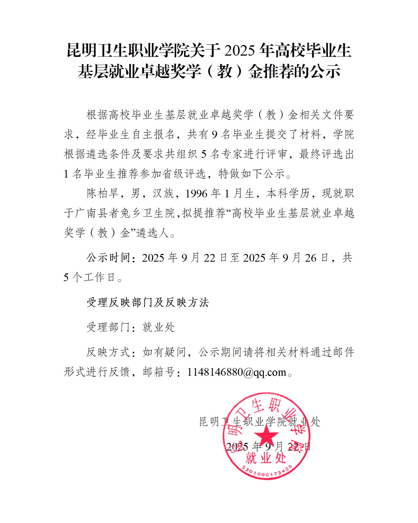 350vip浦京集团官网关于2025年高校毕业生基层就业卓越奖学(教)金推荐的公示