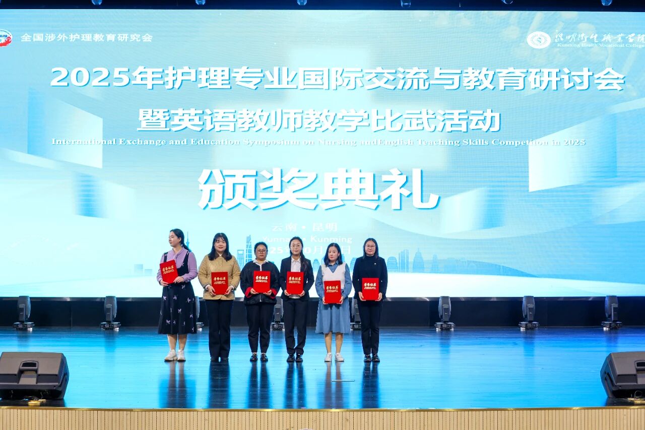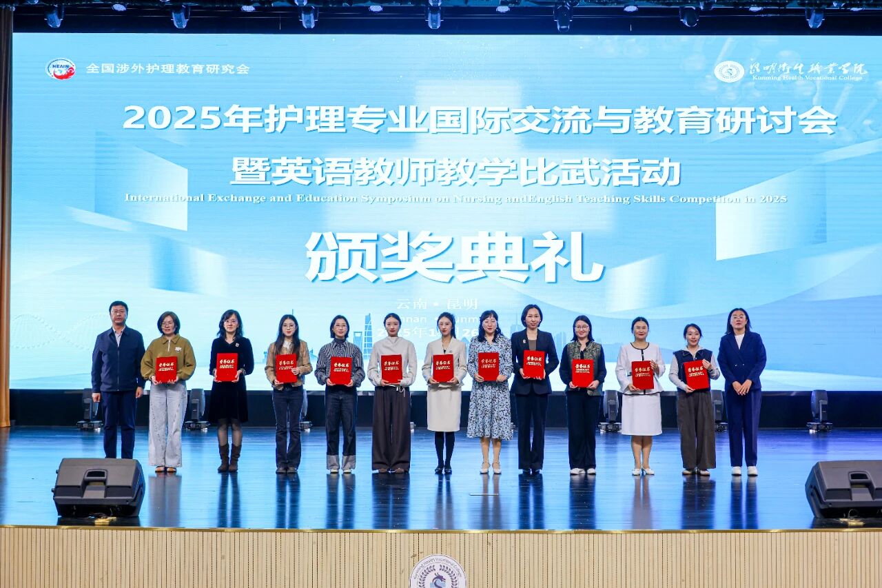 闭幕式上,学院副院长李玉晶、佳木斯职业学院副院长杨国俊、全国涉外护理教育研究会秘书长毕向群为获奖教师颁奖。