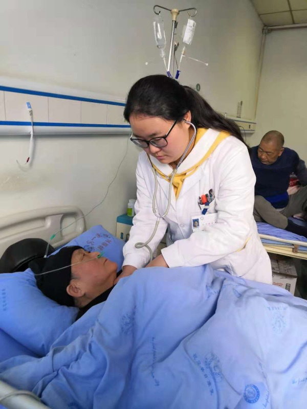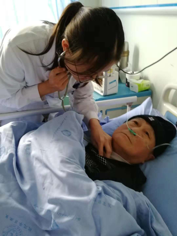 每当有新病人,带教老师都会在一旁指导,在“放手不放眼,放眼不放心”的带教原则下,让我们独自操作,不断锻炼自己,下图就是自己在为病人听诊,独自操作,不断的提高了自己的操作能力,掌握各项操作技巧,培养和提高了自己独立思考和独立工作的能力。