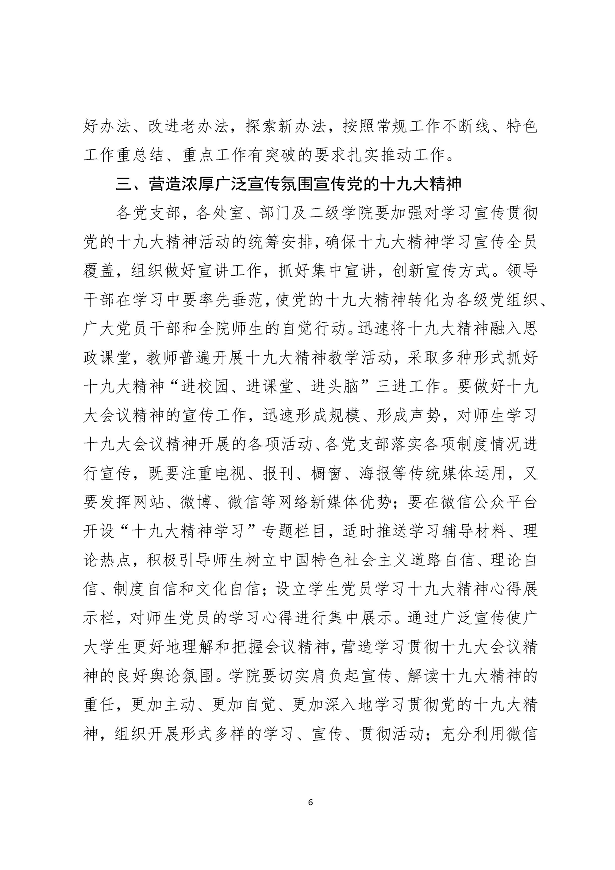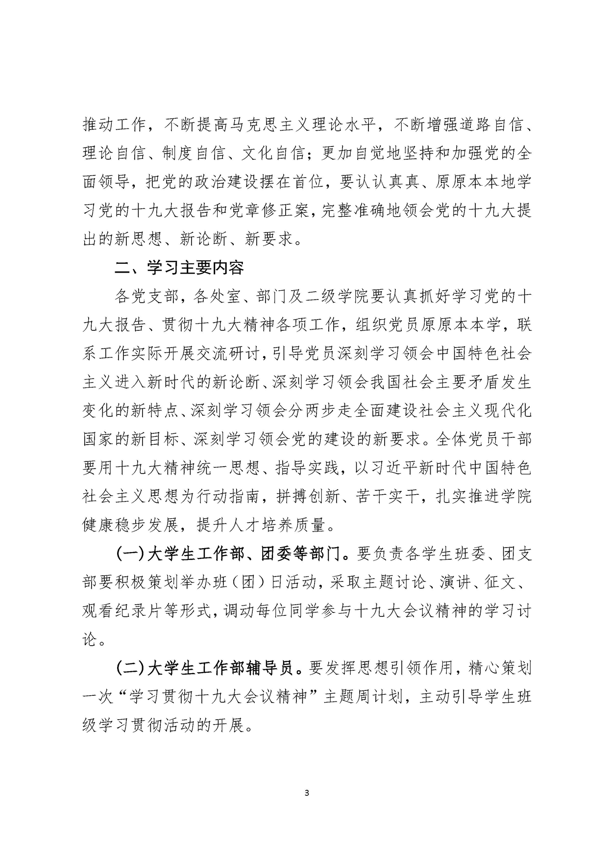 关于在全院组织开展学习贯彻党的十九大会议精神的通知