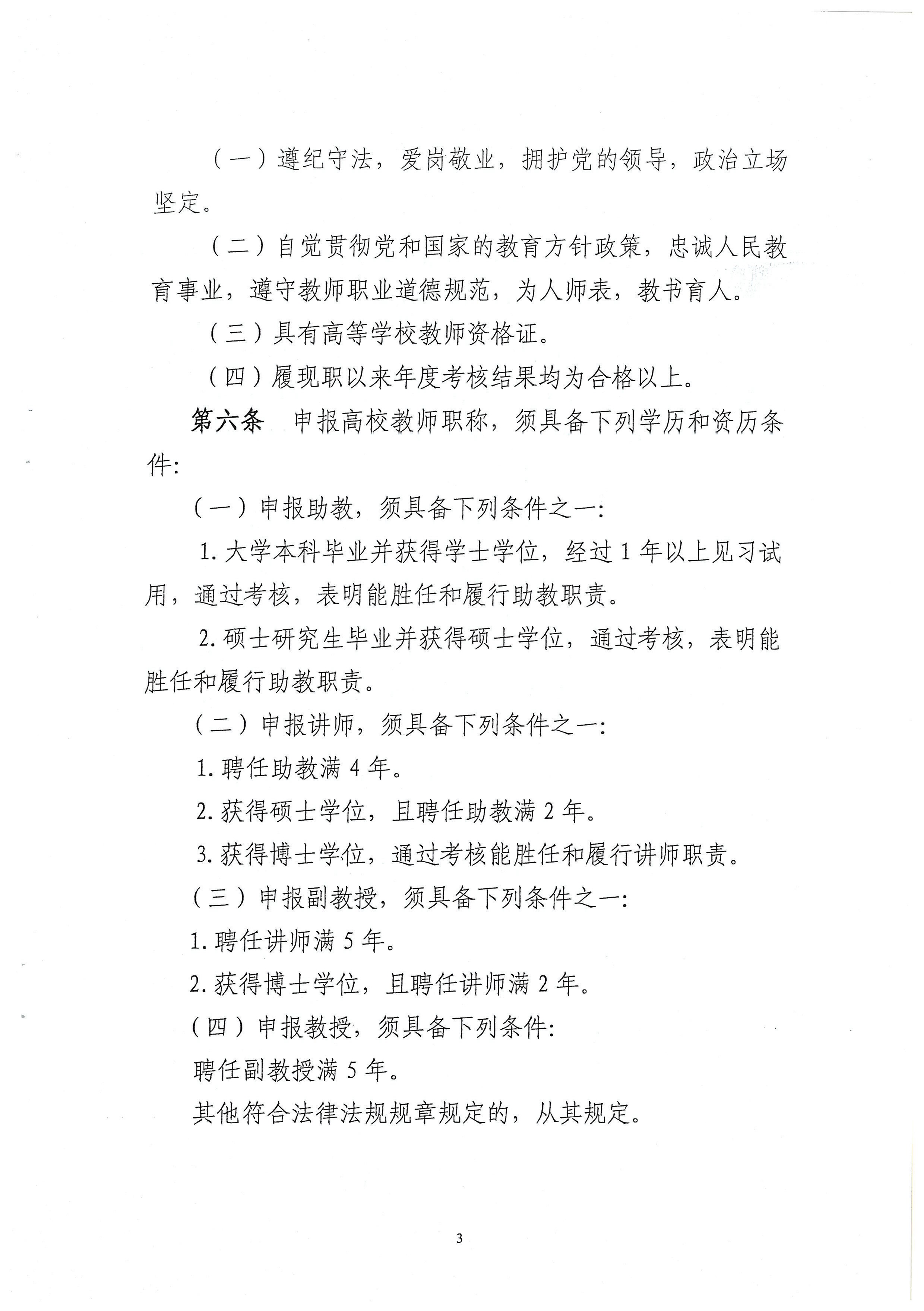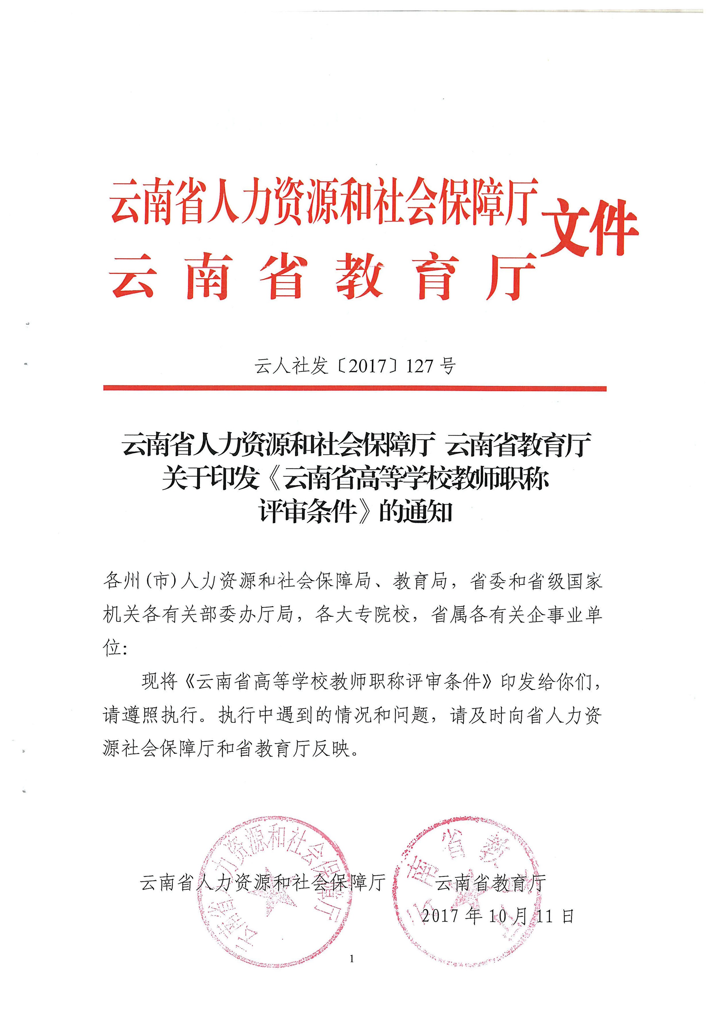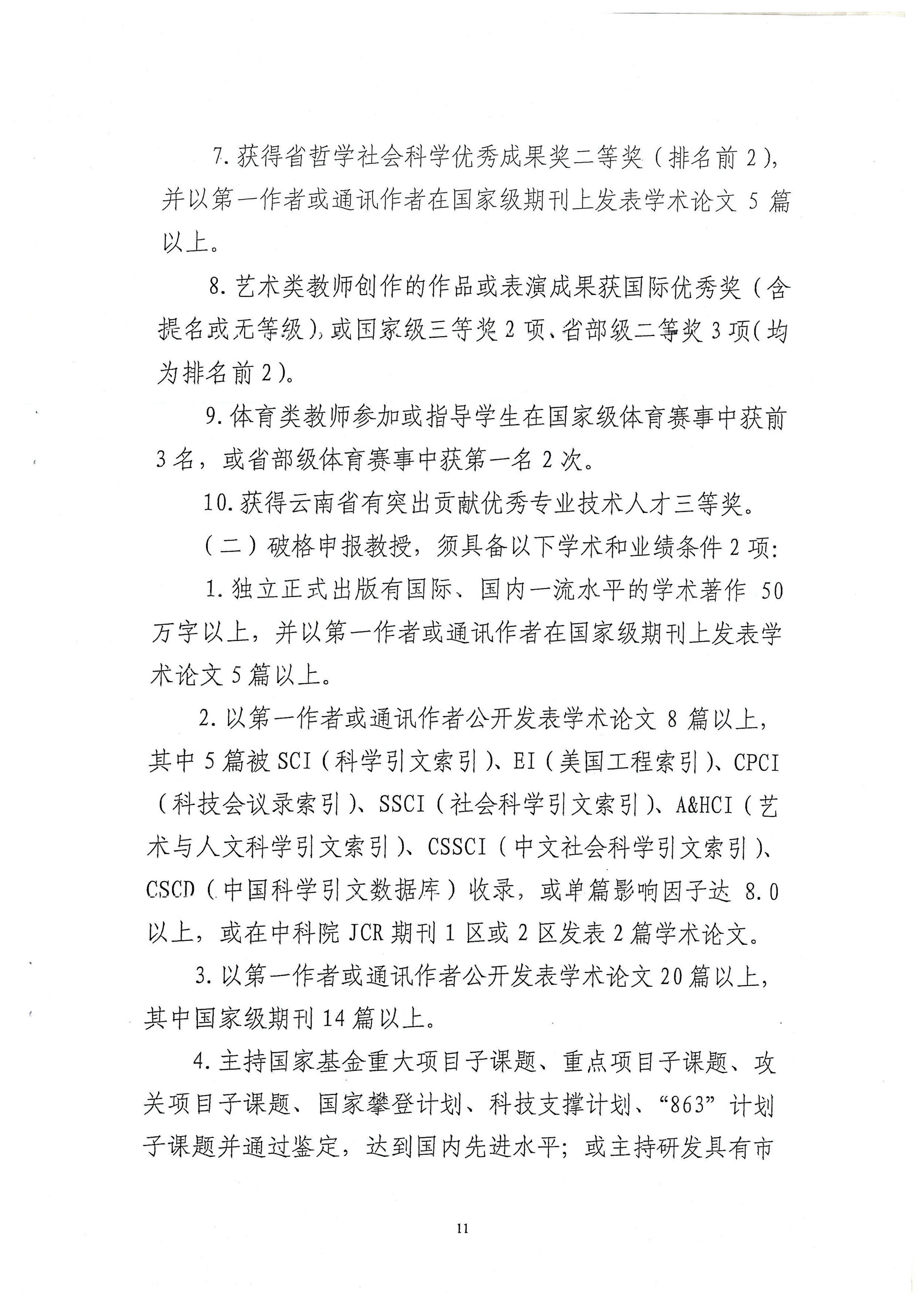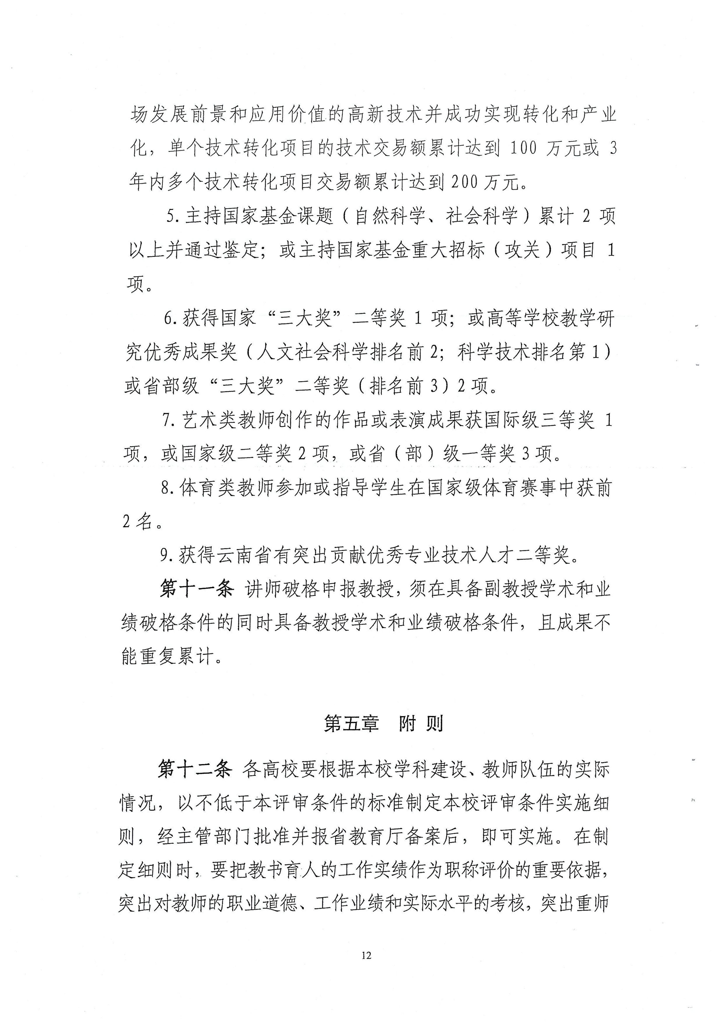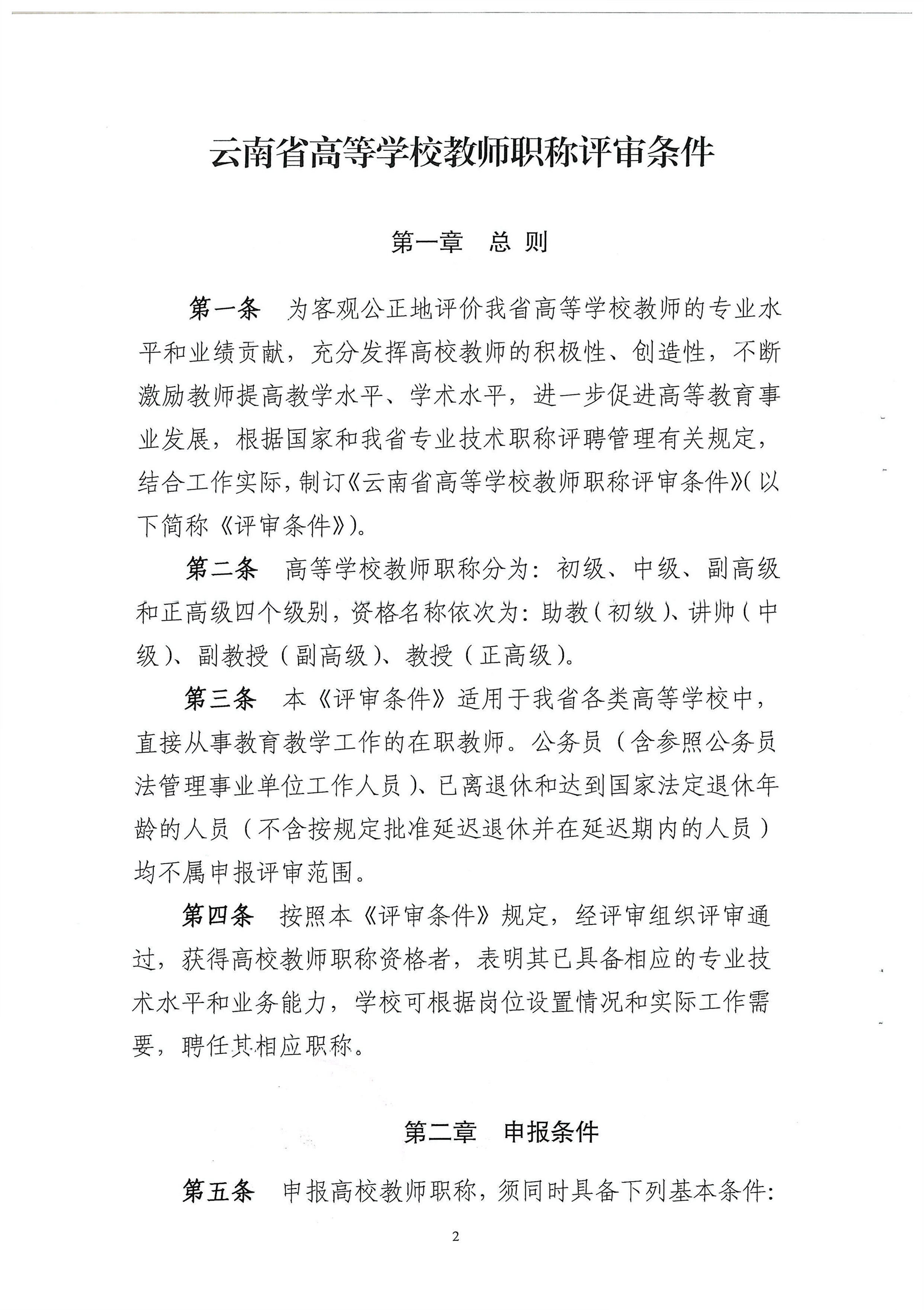 云南省高等学校教师职称评审条件