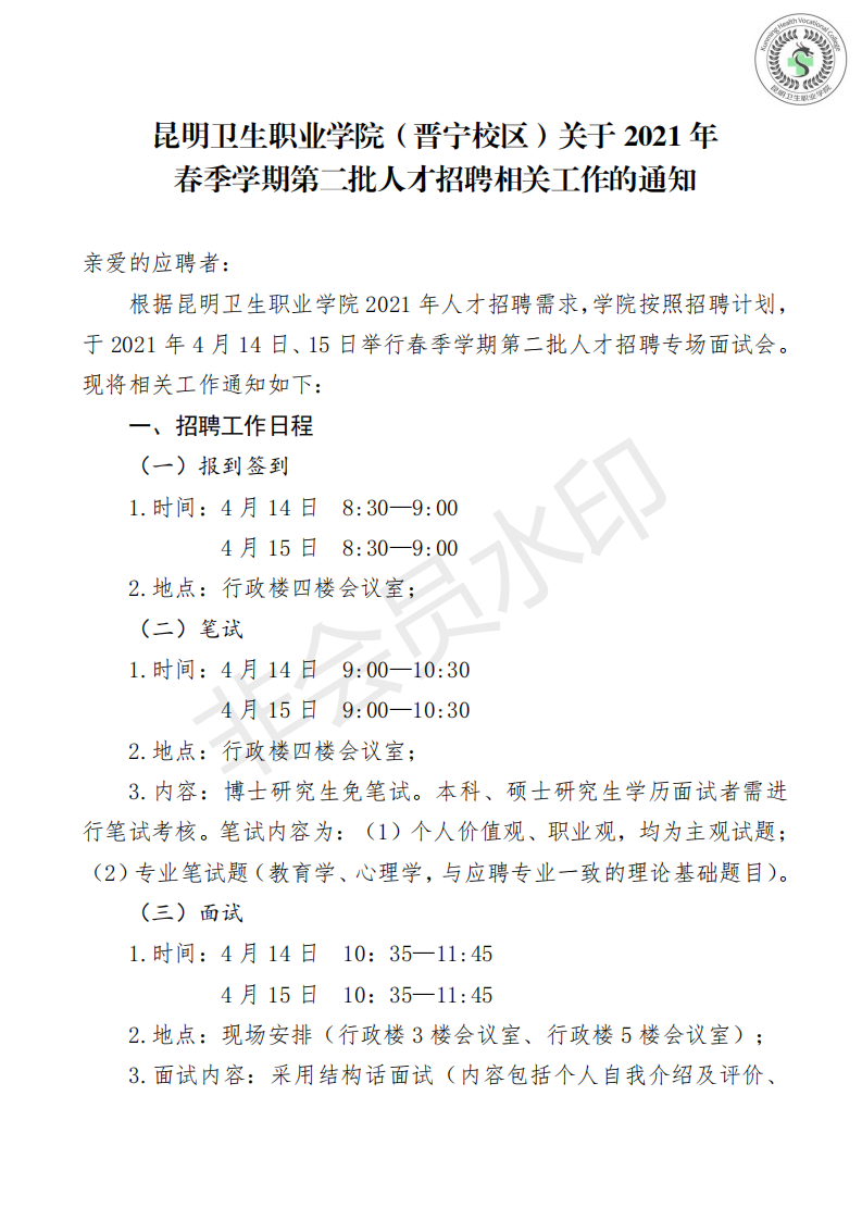 350vip浦京集团官网(晋宁校区)关于2021年春季学期第二批人才招聘相关工作的通知