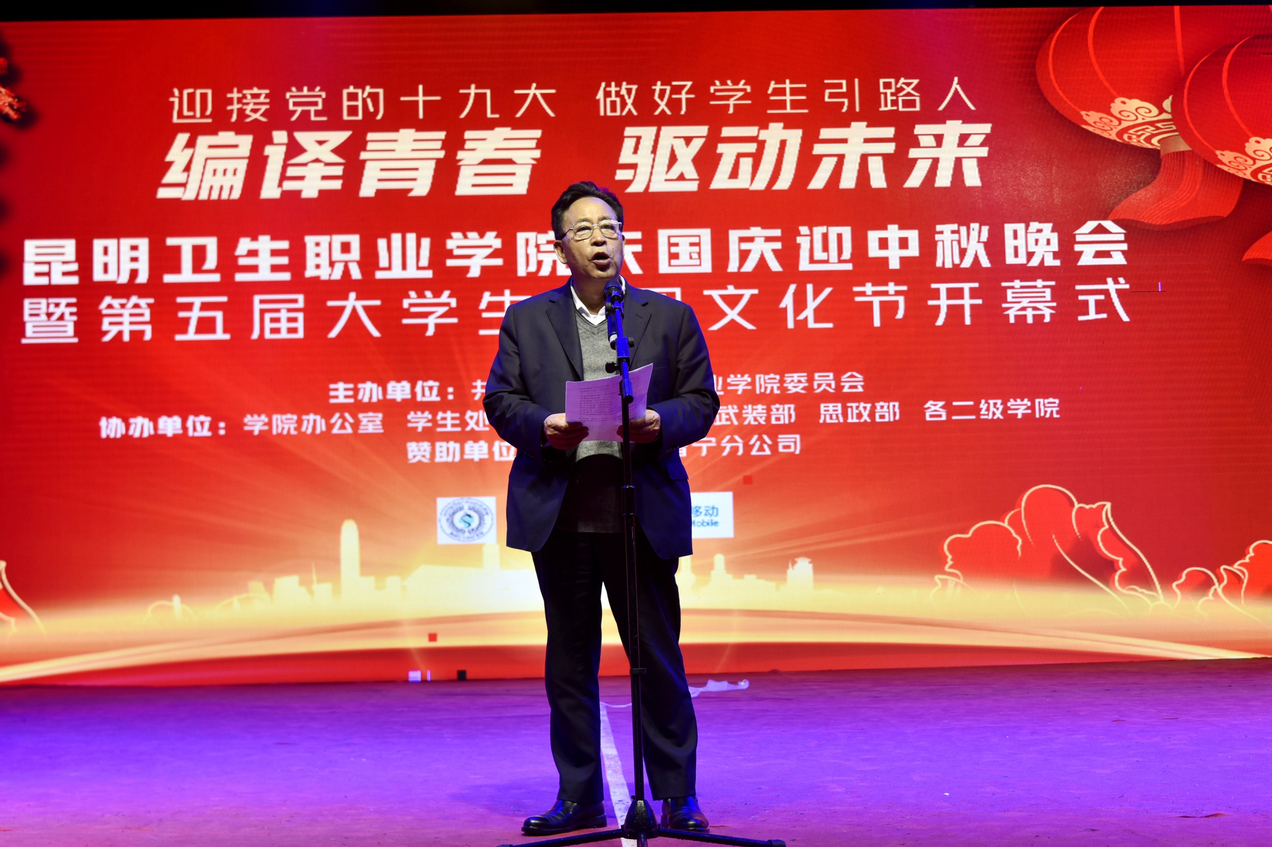 9月29日,350vip浦京集团官网庆国庆迎中秋晚会暨第五届大学生社团文化节开幕式在学院足球场隆重举行。本次文艺晚会以“编译青春,驱动未来”为主题,整场晚会通过多姿多彩的舞台表演、美轮美奂的艺术效果、精心编排的节目内容,寄语昆卫新生不忘初心努力奋斗,不负期许。