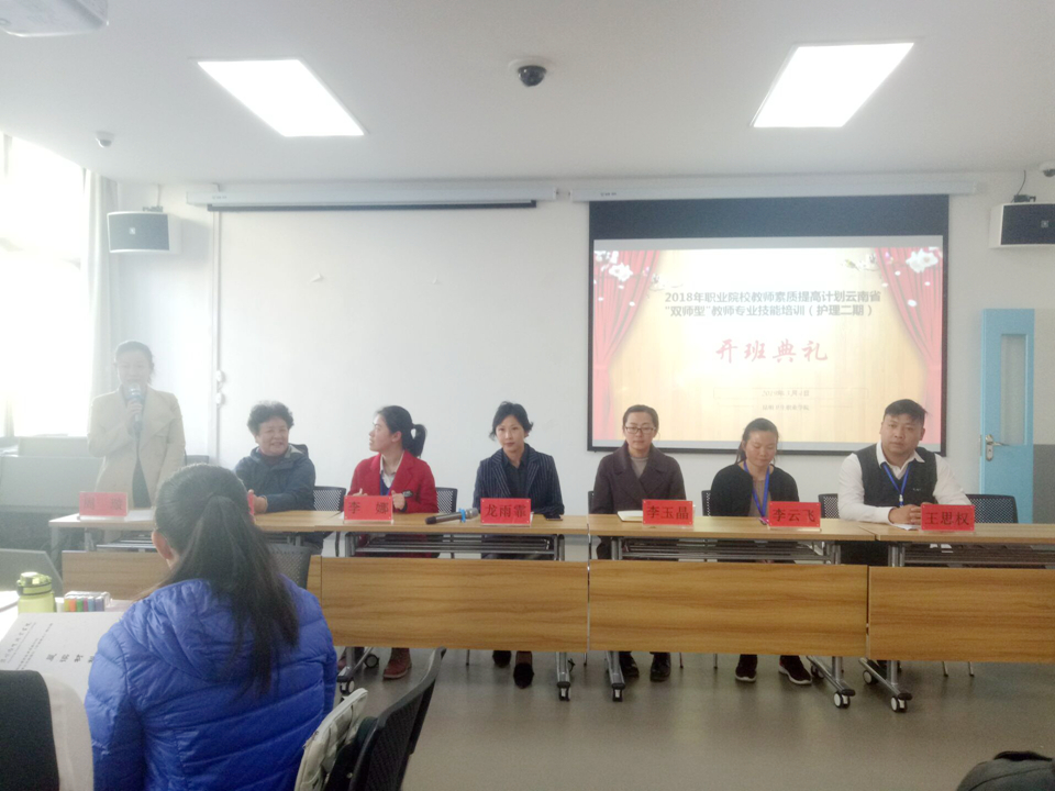 3月4日上午,云南省职业院校教师素质提高计划项目——护理专业(中职)“双师型”教师专业技能培训班在浦京继续教育学院408教室举行开班典礼。学院副院长龙雨霏、护理学院院长蒋淑昆、教务处处长李玉晶、护理学院副院长周璇,教务处副处长李娜、李云飞、王思权和27名国培学员参加了开班典礼,开班典礼由护理学院副院长周璇主持。