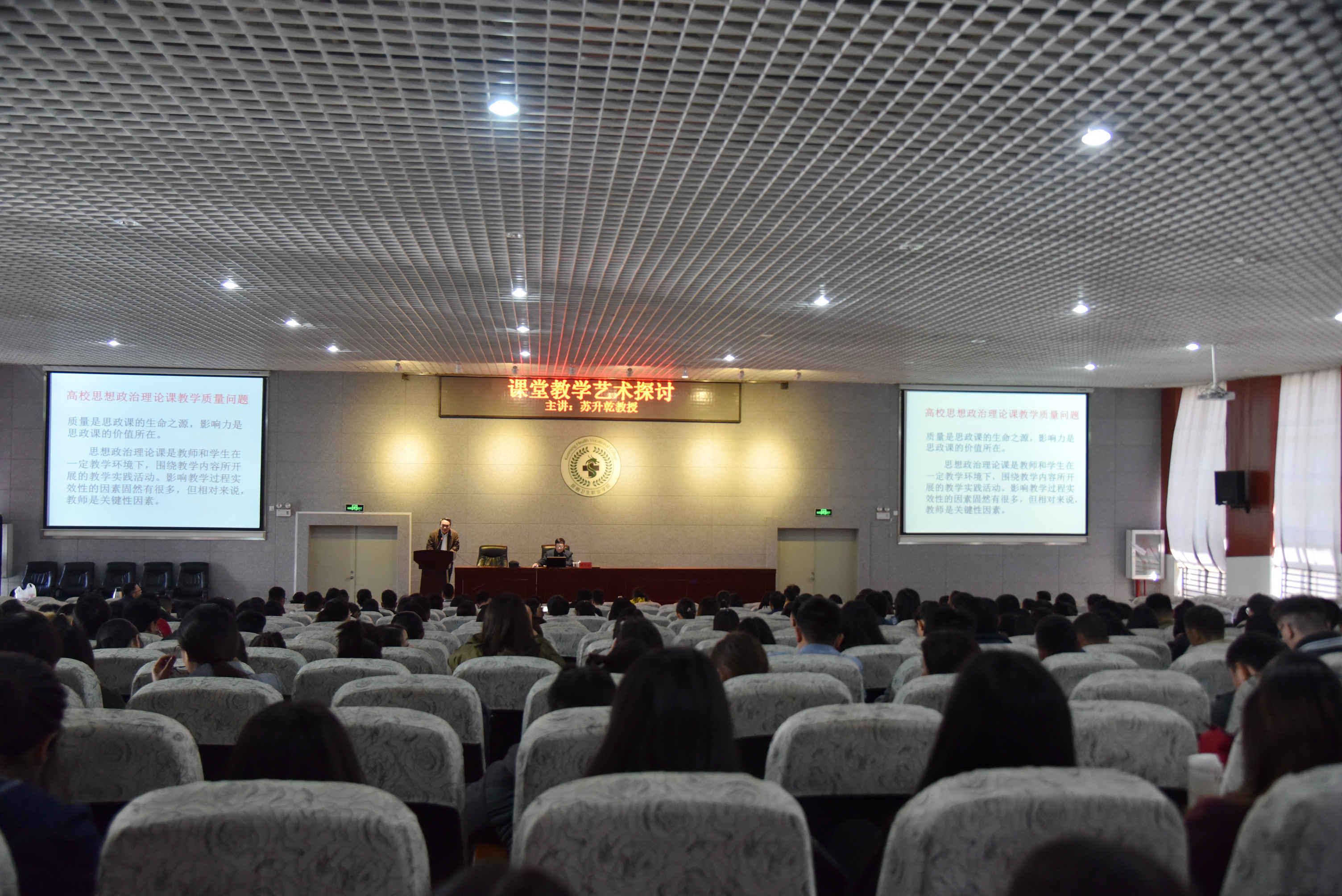 本次培训学院邀请了三位专家和一位优秀青年辅导员,分别就教研室规范化建设、课堂教学艺术探讨、教学诊断与改进、辅导员的职业发展与素质能力提升四个方面进行了培训。学院院长贾勇和党委副书记张晓刚分别以《云南医学高等职业教育发展趋势与我们的使命》和《浅谈高校意识形态工作》为主题做了专场报告。