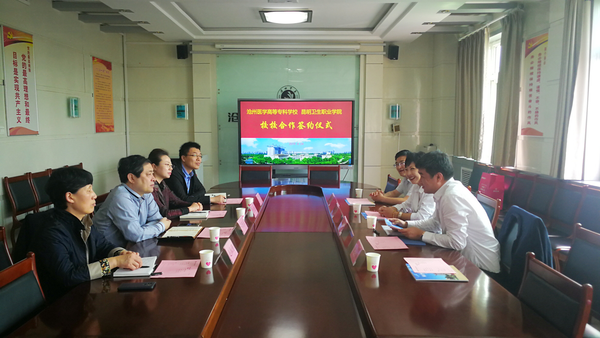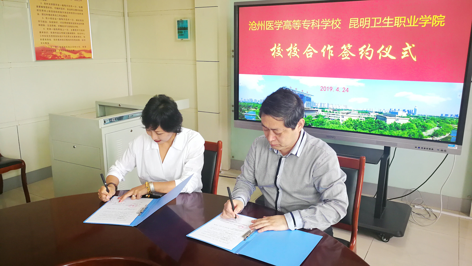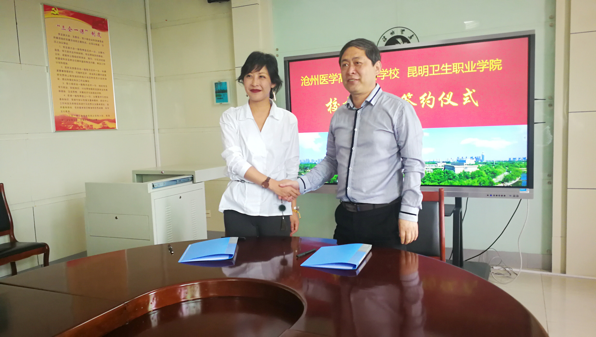 4月24日上午,在沧州医学高等专科学校,浦京一行受到乔跃兵校长、樊喜悦部长及相关职能部门负责人热情接待。交流座谈会上,龙雨霏副院长介绍了浦京人才培养、专业建设、师资培养等工作情况,并提出进一步深度合作的意愿。乔跃兵校长介绍了沧州医学高等专科学校历史变迁、学校建设成果等工作情况。随后,两校人员进行了对口交流,大家就共同关心的话题进行了深入讨论,并签订了校校合作协议。