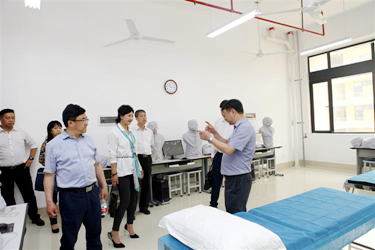在周元明院长、程一波副院长等人热情安排陪同下,浦京一行4人参观了广西卫生职业技术学院双创中心以及相关实训室。