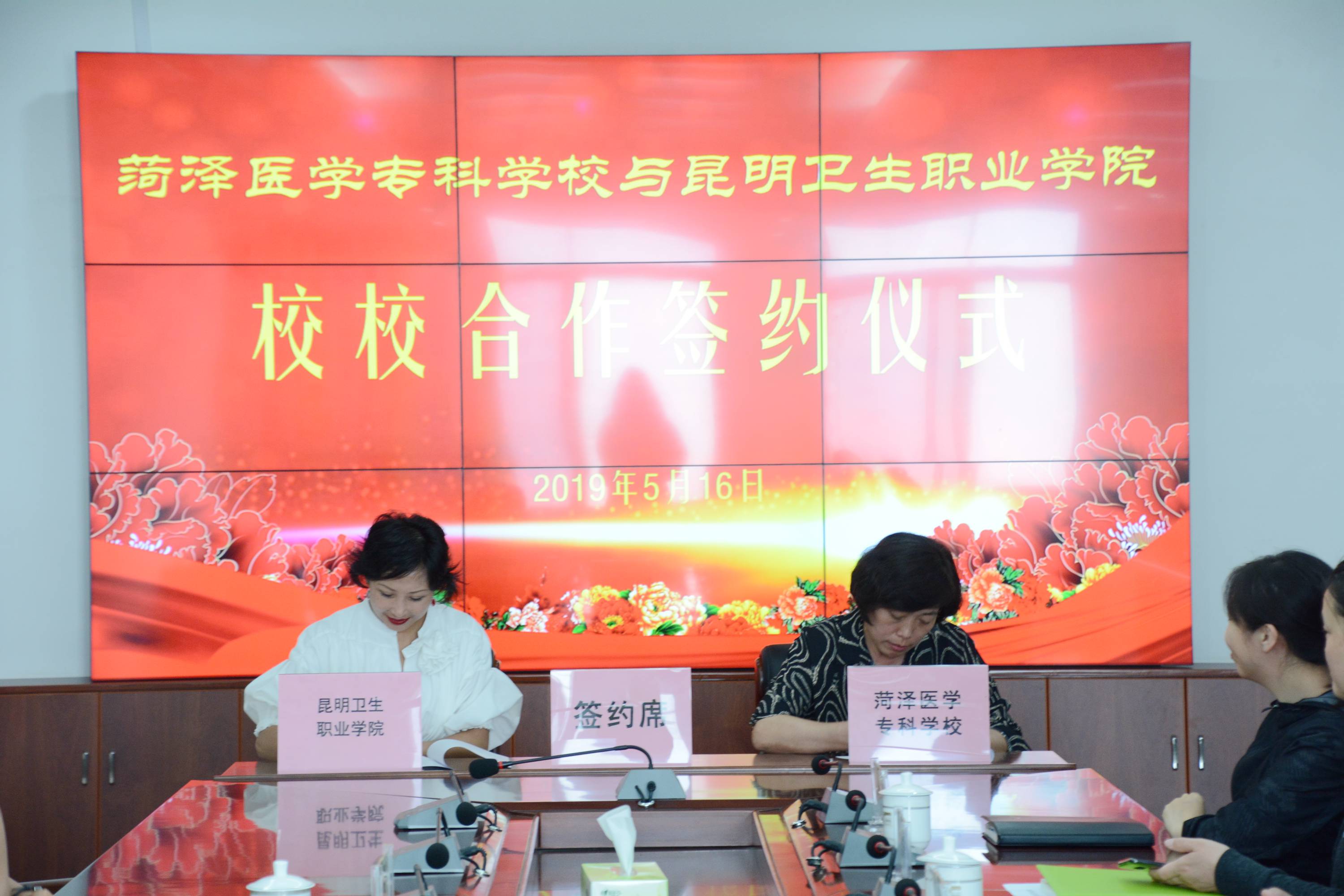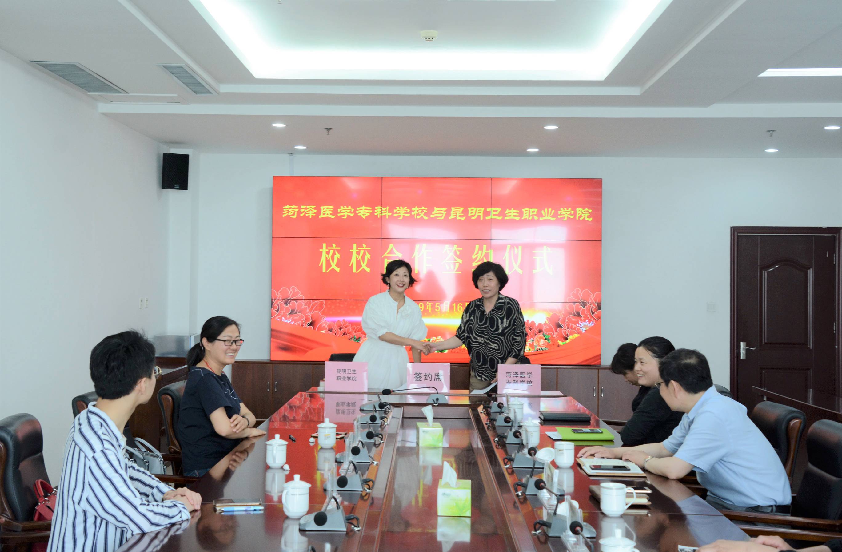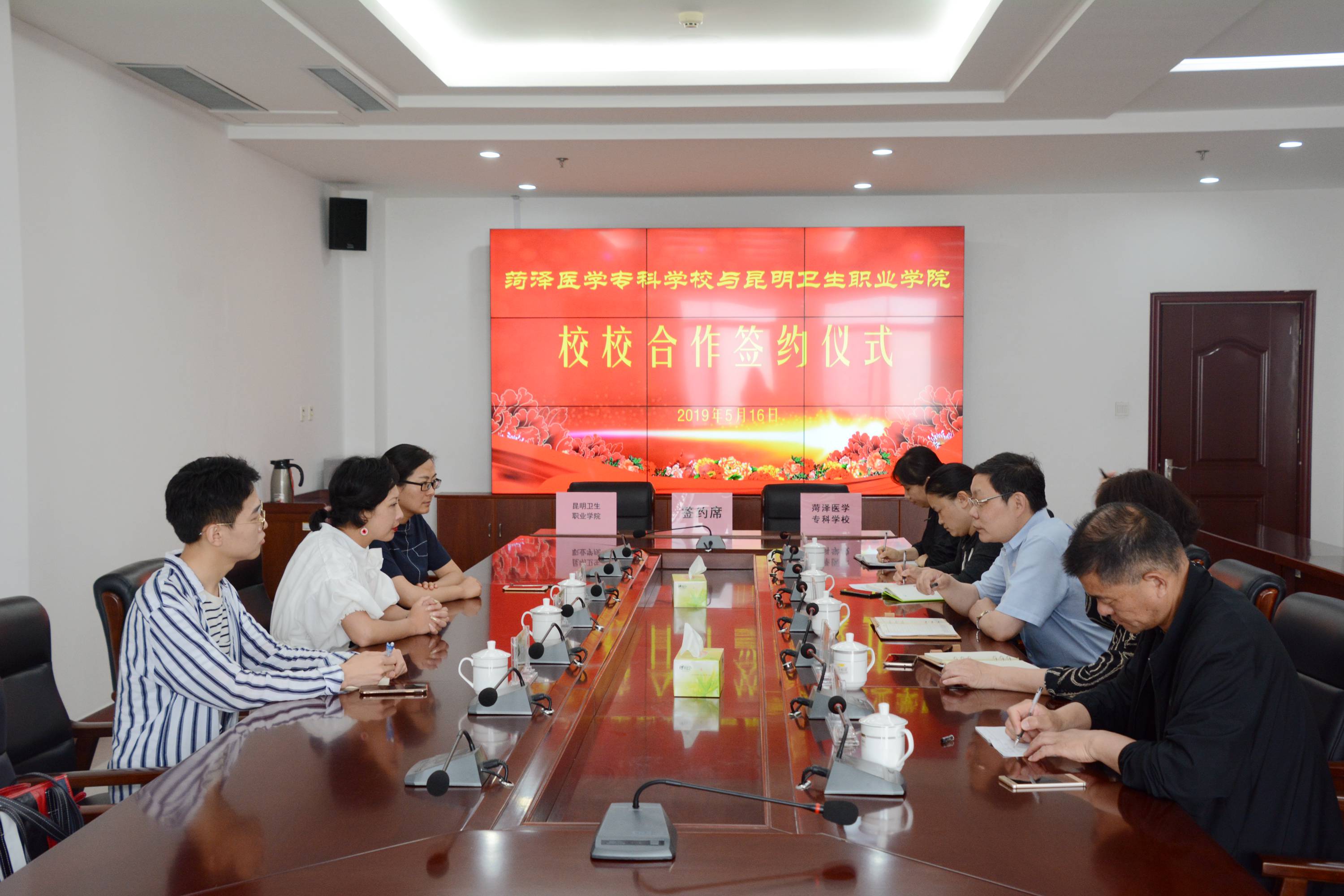 为进一步促进校校间的交流与合作,实现资源共建共享,共同提高人才培养质量,5月16日,浦京由副院长龙雨霏带队,教务处处长李玉晶、教务处处长助理徐伟杰一行3人,本着学习、借鉴、交流、加强沟通与增进友谊的态度,到菏泽医学专科学校考察交流,并签订校校合作协议。期间受到菏泽医学专科学校党委副书记、校长顾润国,党委委员、副校长李琳及相关职能部门负责人的热情接待。