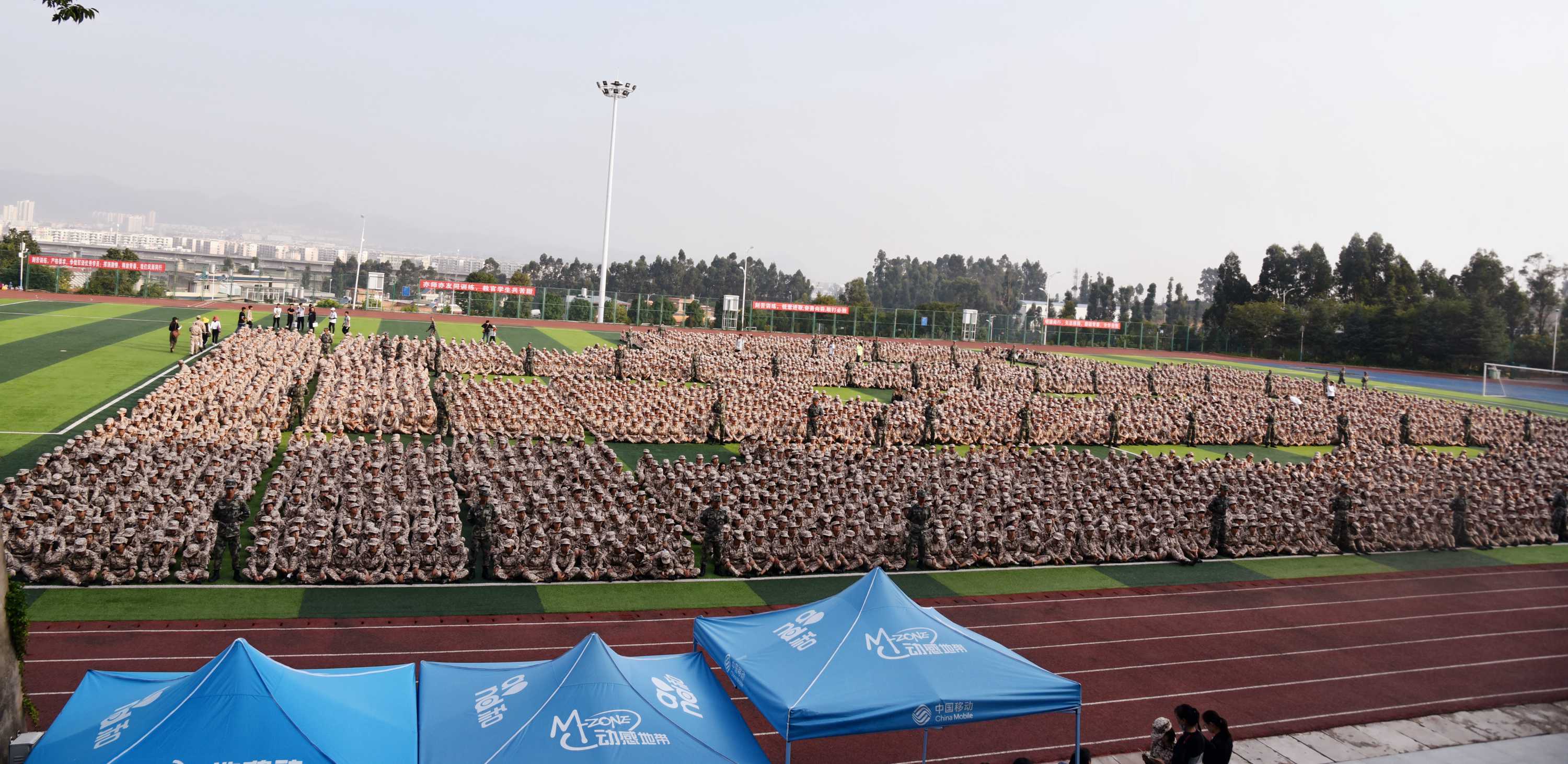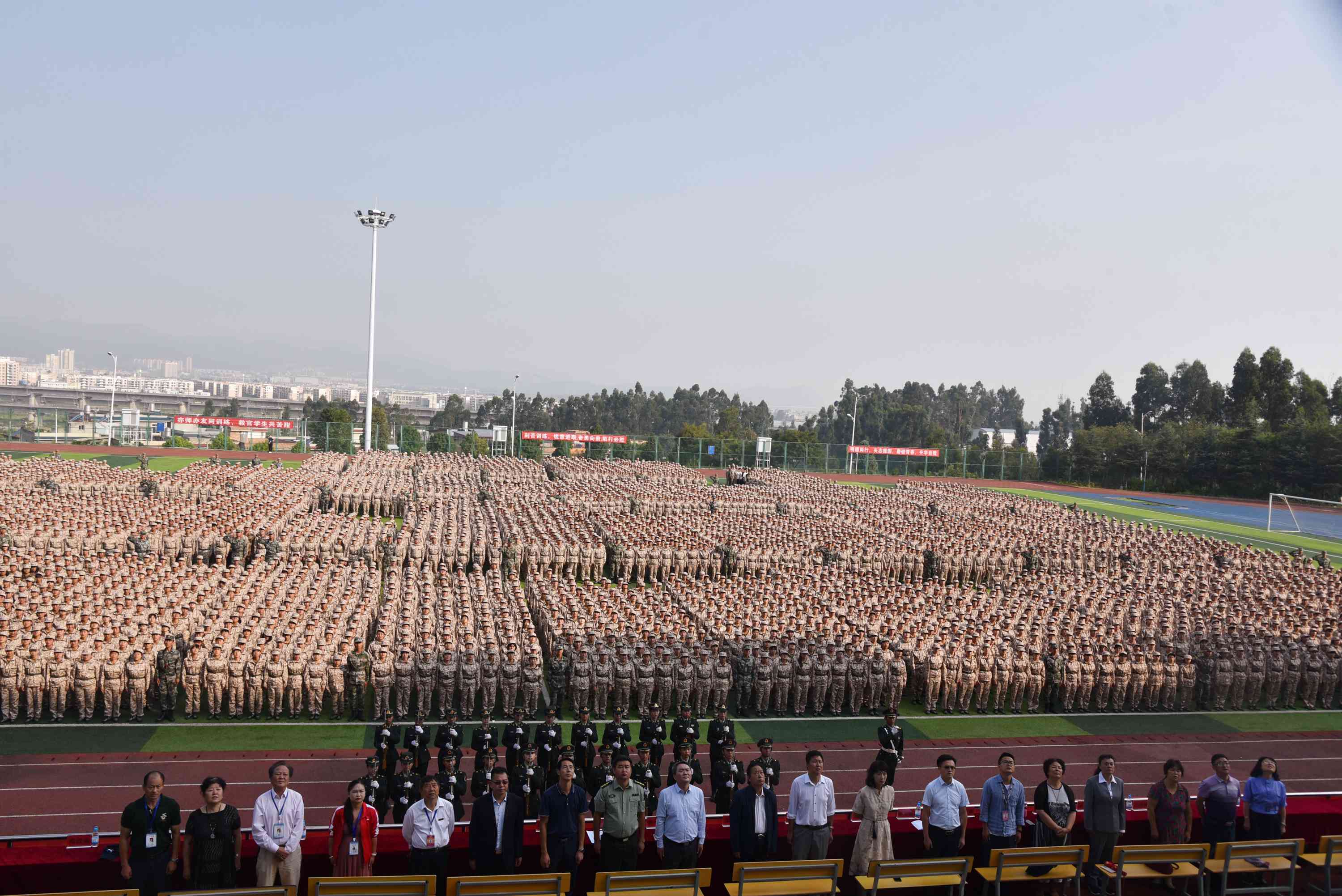 在全国上下隆重庆祝中华人民共和国成立70周年之际,为加强国防教育,增强青年学生的国防观念和国防素质,弘扬爱国主义精神,学院新生军训动员大会于2019年8月26日上午9:00分在学院足球场举行,标志着2019级新生军训工作进入军事技能训练阶段。云南昆卫教育集团理事长、学院党委书记龙正昌,院长贾勇、党委副书记张晓刚,党委委员、副院长周平,副院长龙雨霏、张磊、张尤松、陈举国,各职能处室负责人、二级学院院长及军训领导小组成员出席了大会。全体军训教官、军训干部及全院7000余名新生参加本次动员大会。大会由学院武装部部长高政南主持。