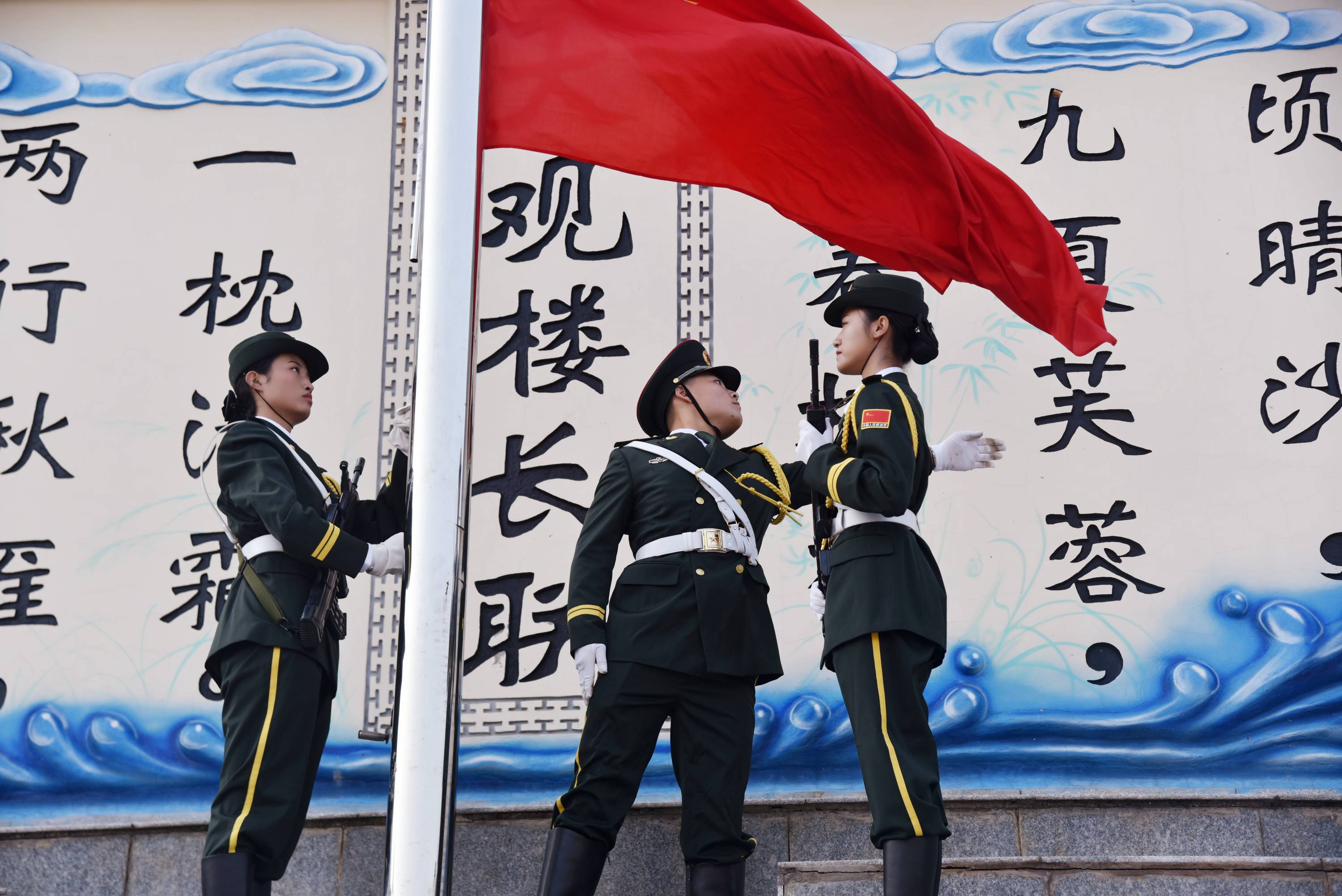 伴随着庄严的国歌声,五星红旗冉冉升起,军训动员大会拉开帷幕。