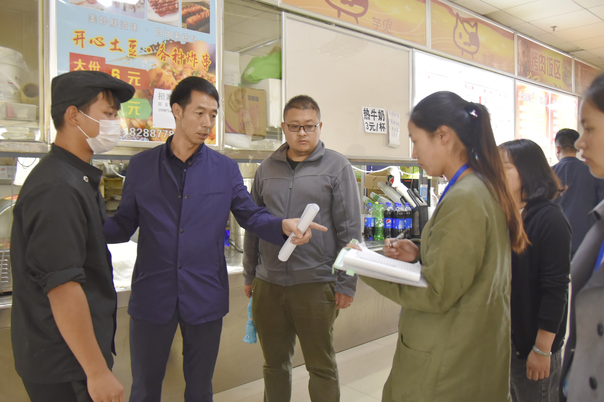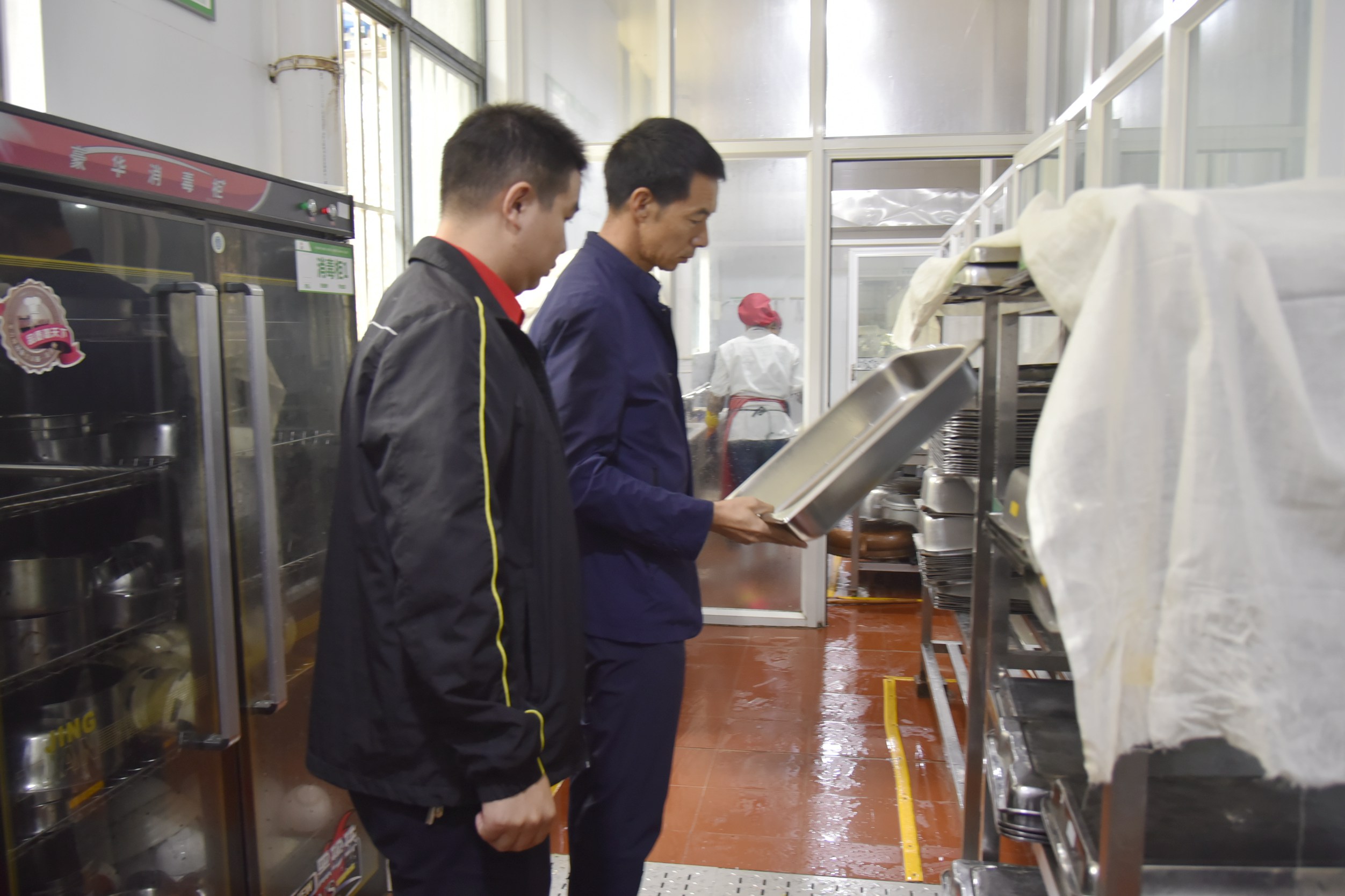 期间,检查组深入各食堂的每一个角落,实地查看了学院食堂场所的环境卫生、食品加工、仓库房管理等重点环节。重点查看了食堂食品原材料进货台账、从业人员健康证、食品存放与仓储、餐具消毒、食品留样、明厨亮灶等相关规定落实情况。每到一处,张磊副院长及检查组成员都一一深入检查,并对部分食堂进一步合理安排功能分区、优化就餐环境等提出了意见和建议。