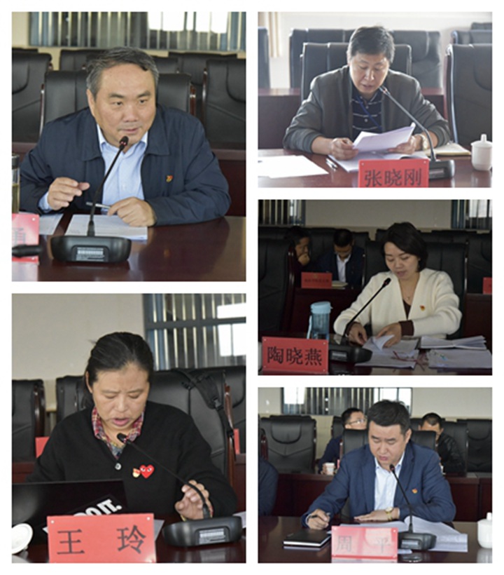 领导班子成员张晓刚、陶晓燕、王玲、周平、贾勇依次做对照检视发言。