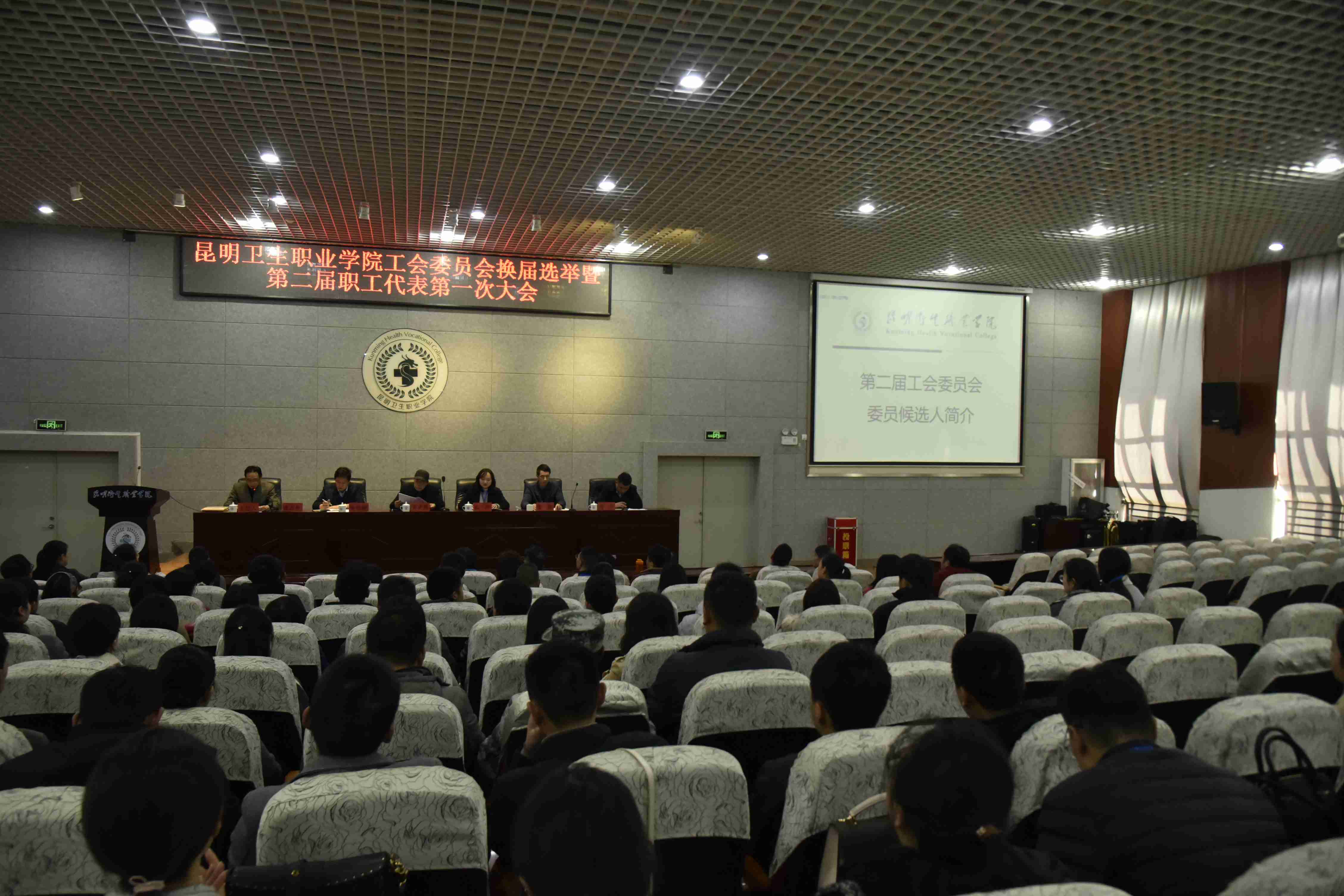 2020年1月14日,浦京第二届工会委员会换届选举暨第二届教职工代表大会第一次会议在学院学术报告厅召开。昆明市晋宁区总工会党组成员、常务副主席郭萍到会指导,学院董事长、党委书记龙正昌,党委副书记、组织部部长张晓刚,党委委员、副院长周平,第一届工会主席、副院长张磊及第二届工会会员代表暨第一届教职工代表共89人出席会议。学院老教授、专家特邀参加会议。会议由第一届工会副主席虎志辉主持。