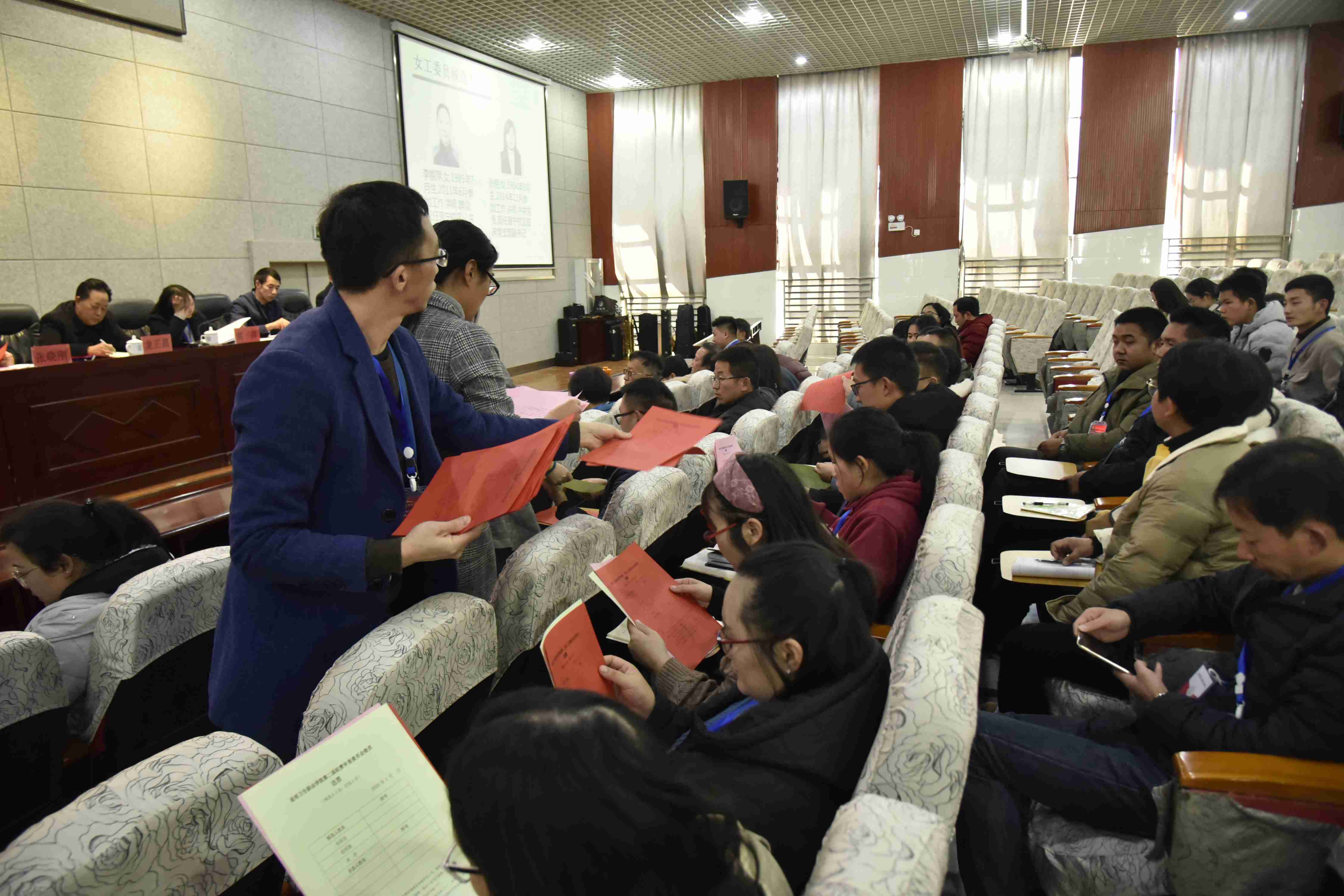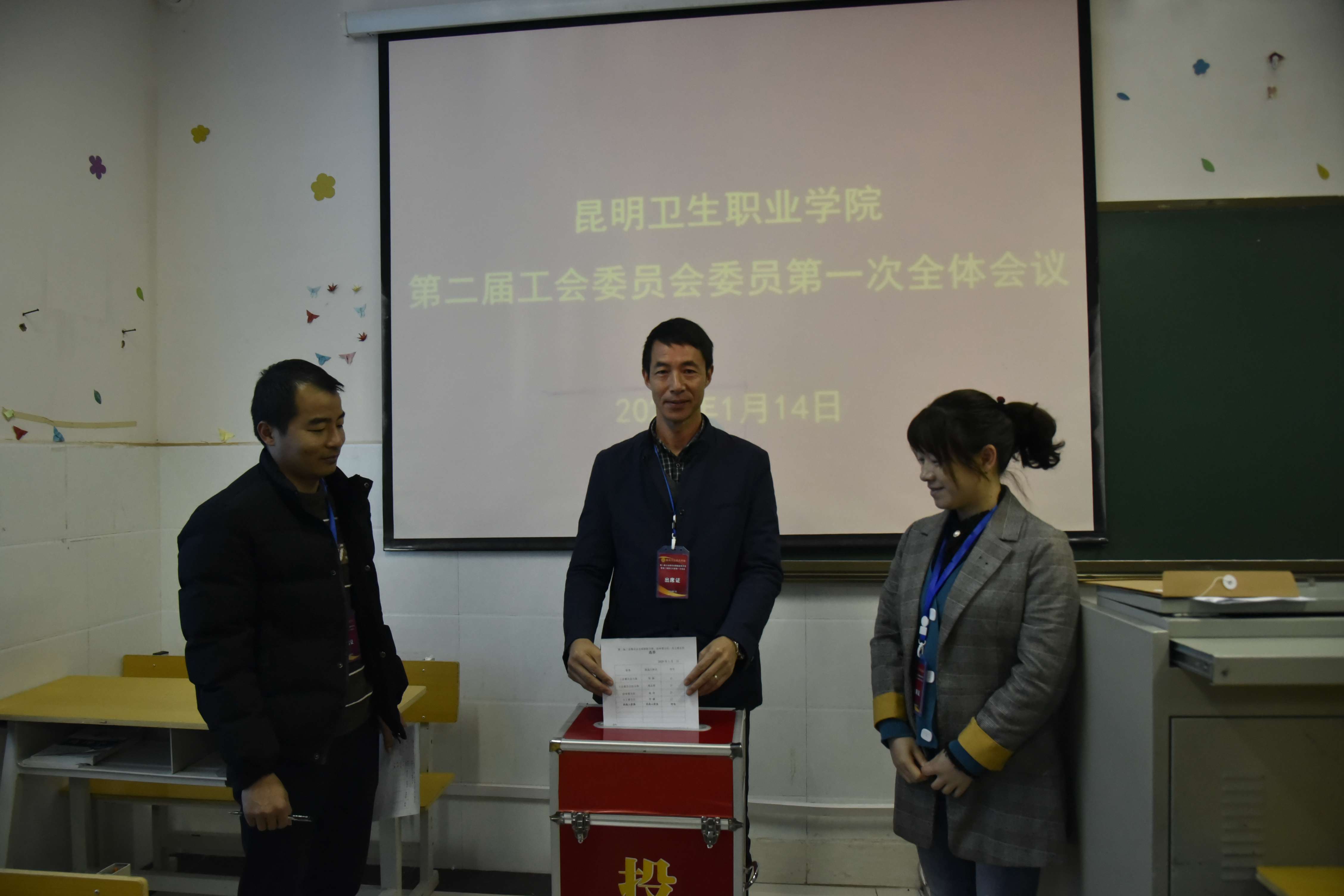随后,大会进行换届选举。李娜老师宣读《350vip浦京集团官网第二届工会委员会代表大会选举办法》、《总监票人、计票人名单》,全体代表举手表决通过选举办法和总监票人、计票人名单。党委委员、副院长周平同志宣读《350vip浦京集团官网第二届工会委员会委员候选人名单》,全体代表通过无计名投票,选举产生了学院工会第二届工会委员会。