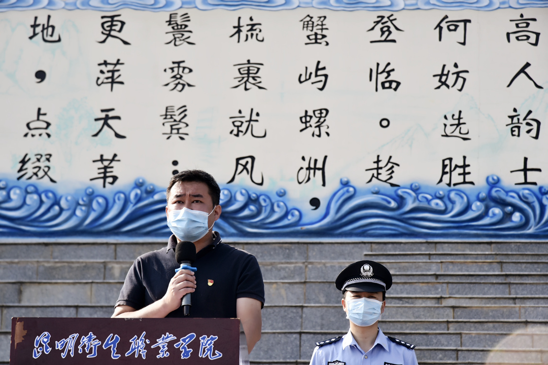 昆明市公安局晋宁分局治安管理大队大队长谢亮贤通报了晋宁区治安志愿者工作开展情况,讲解了社会治安志愿者工作职责。