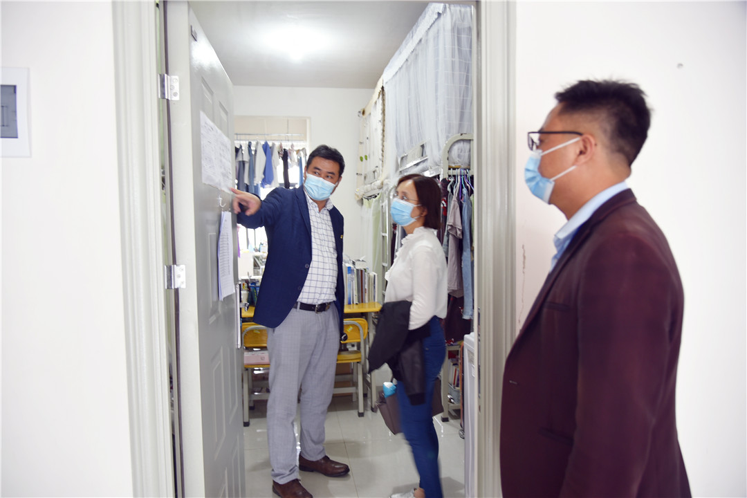 专家组查阅了浦京2020年春季学期学生开学联防联控工作方案和疫情防控工作台账,并到学院校医室、实训室、学生公寓、学生餐厅和学生返校隔离区实地考察调研。