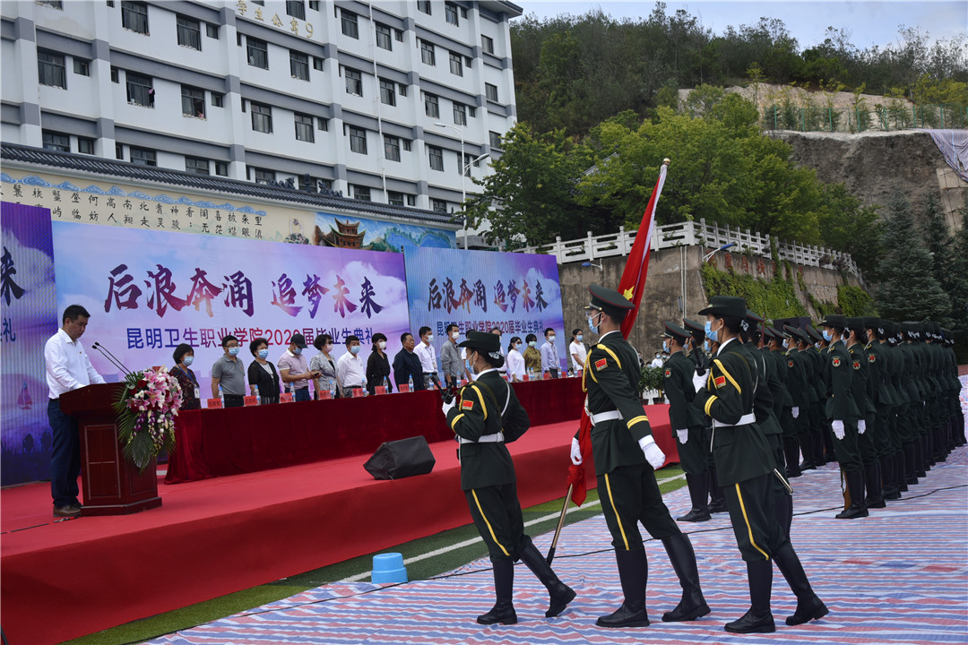 雄壮的国歌声中,五星红旗冉冉升起,2020届毕业典礼正式开始。毕业典礼由学院党委委员、副院长周平主持。