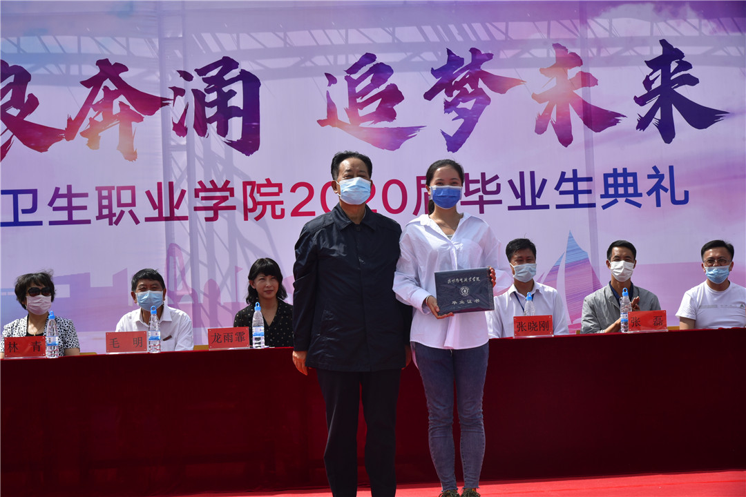 副院长龙雨霏宣读了2020届优秀毕业生、优秀实习生表彰名单。出席毕业典礼的领导为他们颁奖。