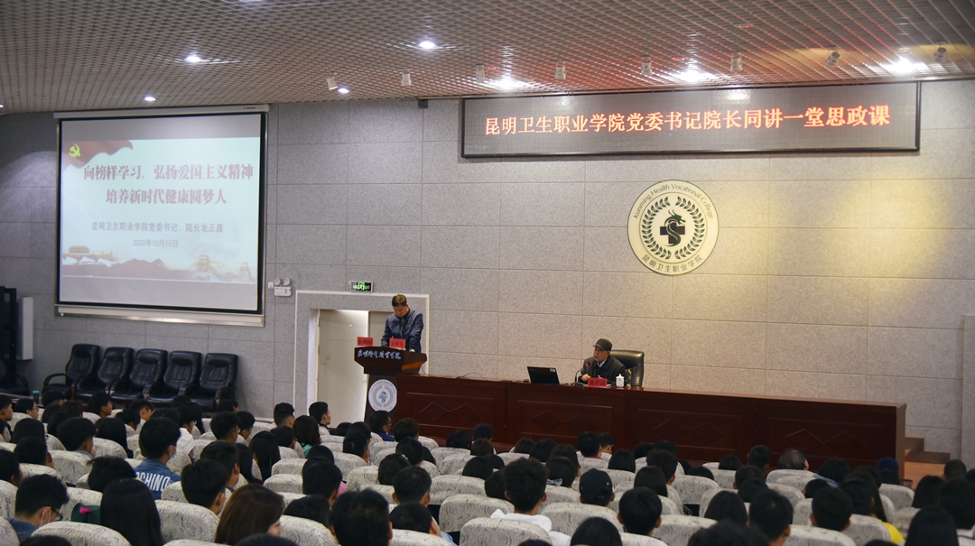 课上,学院党委书记、院长龙正昌以《向榜样学习,弘扬爱国主义精神 培养新时代健康圆梦人》 为题,通过把人民群众生命安全和身体健康放在第一位、疫情大考彰显中国效率、疫情防控的世界眼光和大国担当、在抗击疫情中淬炼中国精神、向抗击疫情的医务工作者致敬五个篇章,讲述了以习近平同志为核心的党中央在疫情防控的人民战争、总体战、阻击战中的正确领导和英明决策;我国疫情防控取得的决定性成果中展现的中国共产党的领导和中国特色社会主义制度所彰显的显著优势。鼓励同学们充分认识我国疫情防控成就并将其转化到立志报国、投身健康中国梦圆梦之旅上来。