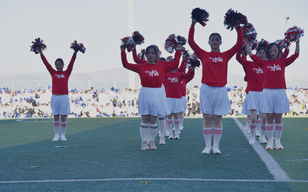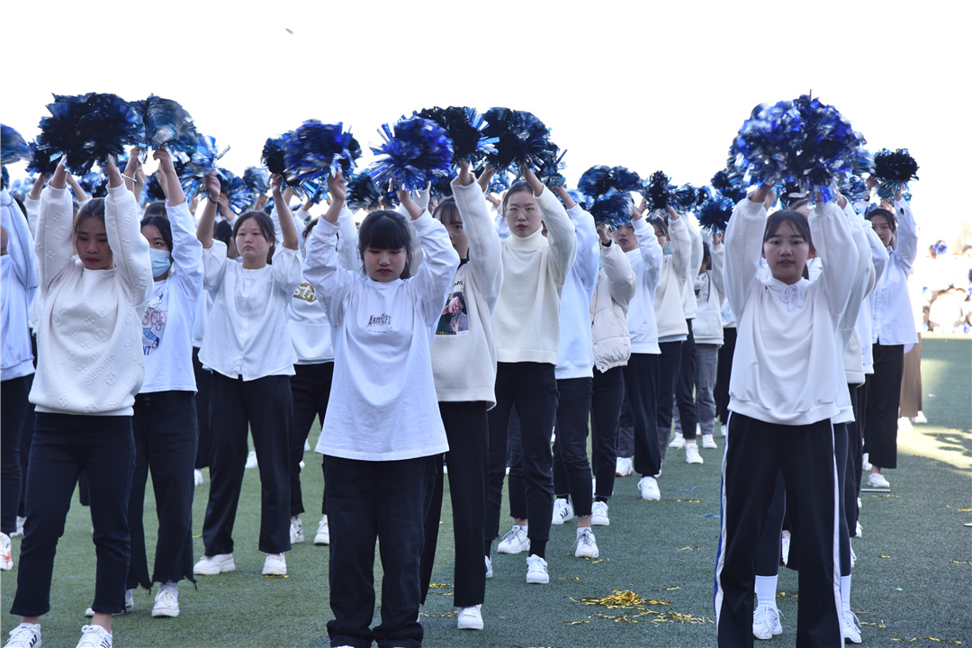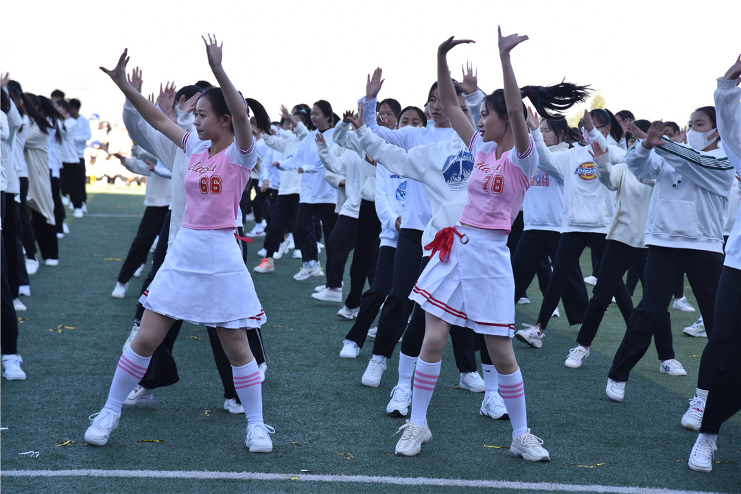 学院啦啦操校队展演后,护理学院进行了千人啦啦操比赛。
