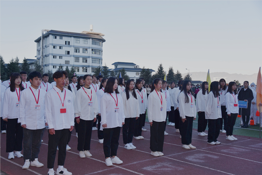 2020级高职护理3班邹济锴和公共学院周晓飞老师分别代表运动员和裁判员宣誓。