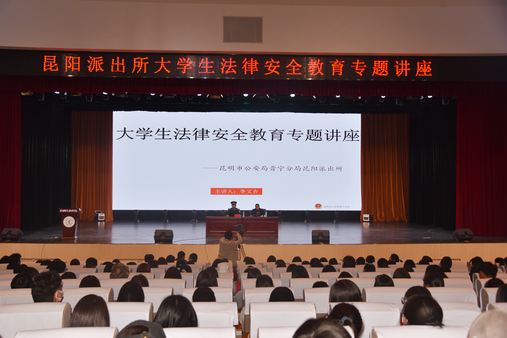 为进一步增强广大师生的安全意识,3月11日晚,浦京邀请到昆明市公安局晋宁分局昆阳派出所所长李文吉在学院明德会堂为广大师生作法律安全教育专题讲座。讲座由大学生工作部部长王冬主持。