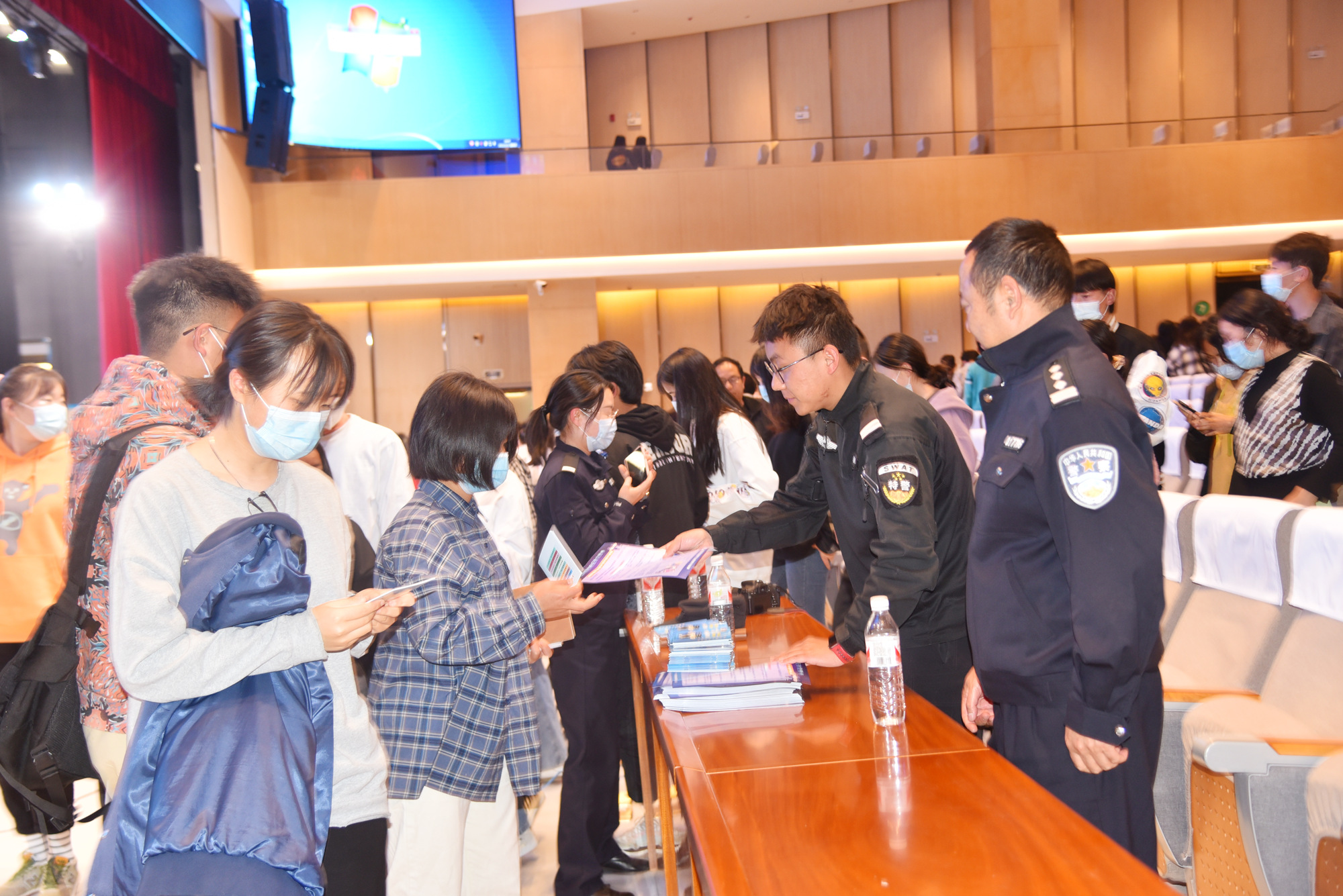 讲座现场,民警还给同学发放了法制宣传单。