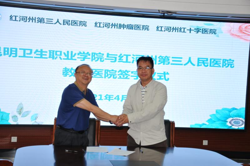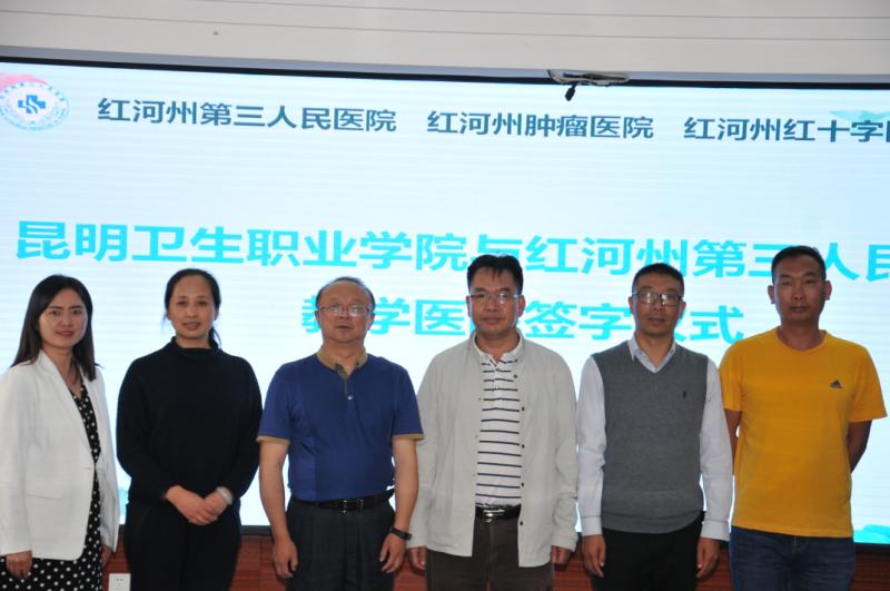 最后,红河州第三人民医院副院长后群与350vip浦京集团官网副院长张尤松共同签订了《教学医院协议书》。相关领导及与会人员共同合影留念。签约仪式结束后,医院教学科邹乙菱主任带领浦京一行进行实地考察,详细介绍了红河州第三人民医院各科室的临床教学情况。
