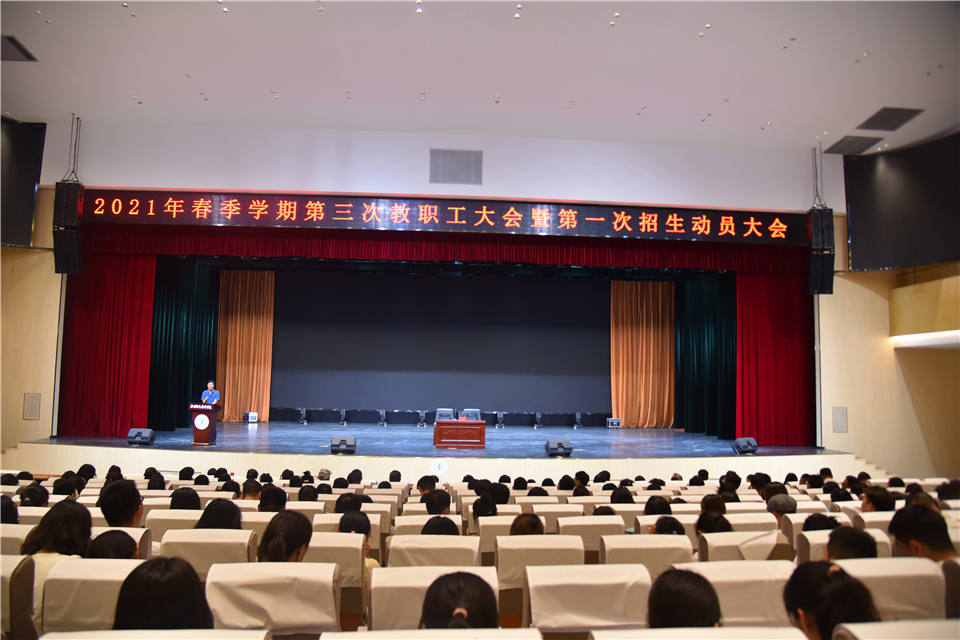 5月20日,350vip浦京集团官网2021年春季学期第三次教职工大会暨第一次招生动员会在明德会堂召开。